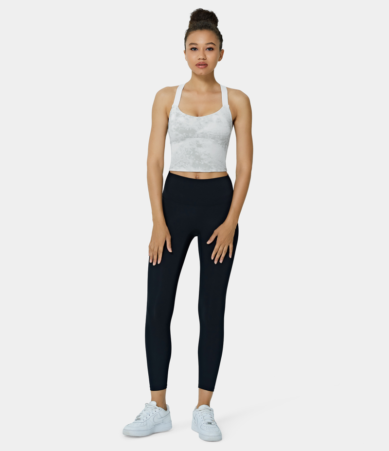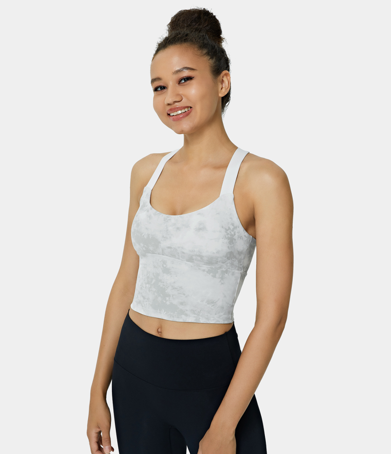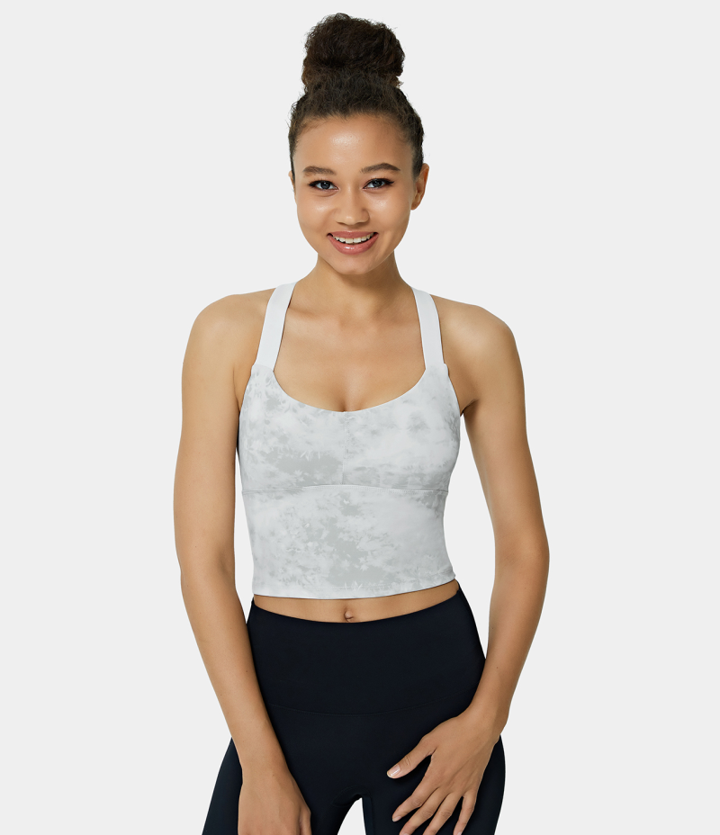 :: Halara High Support Tie Dye Backless Crisscross Running Sports Bra Women's Tops White | LPTNCFM-56