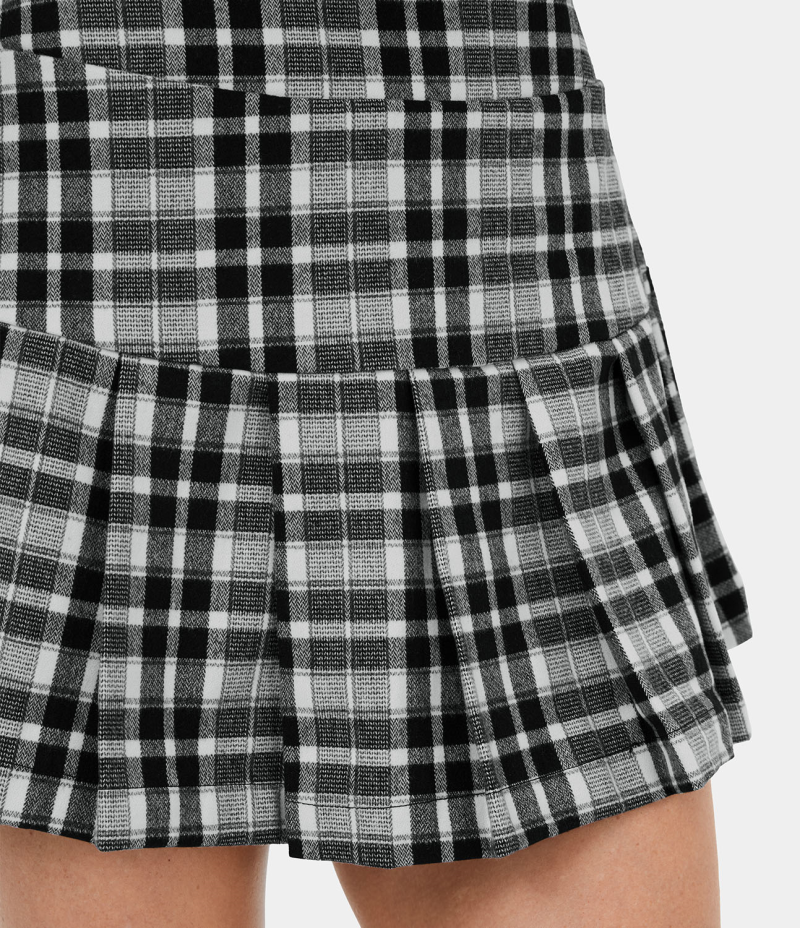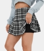 :: Halara High Waisted 2-in-1 Plaid Pleated Mini Casual Women's Skirts Black Grey Plaid | 247369-RFE