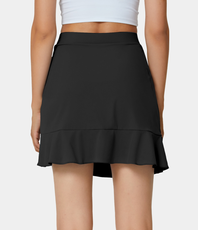 :: Halara High Waisted 2-in-1 Side Drawstring Pocket Plain Flare Women's Skirts Black | 135846-ZXN