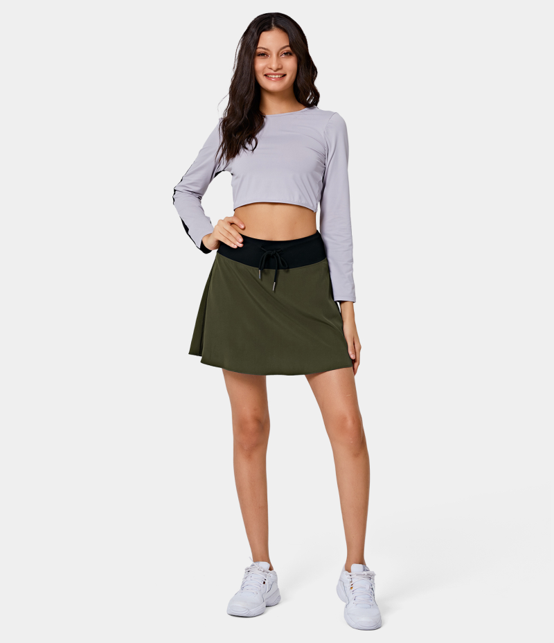 :: Halara High Waisted 2-in-1 Side Pocket Drawstring Women's Skirts Grey Green | 084527-IBR