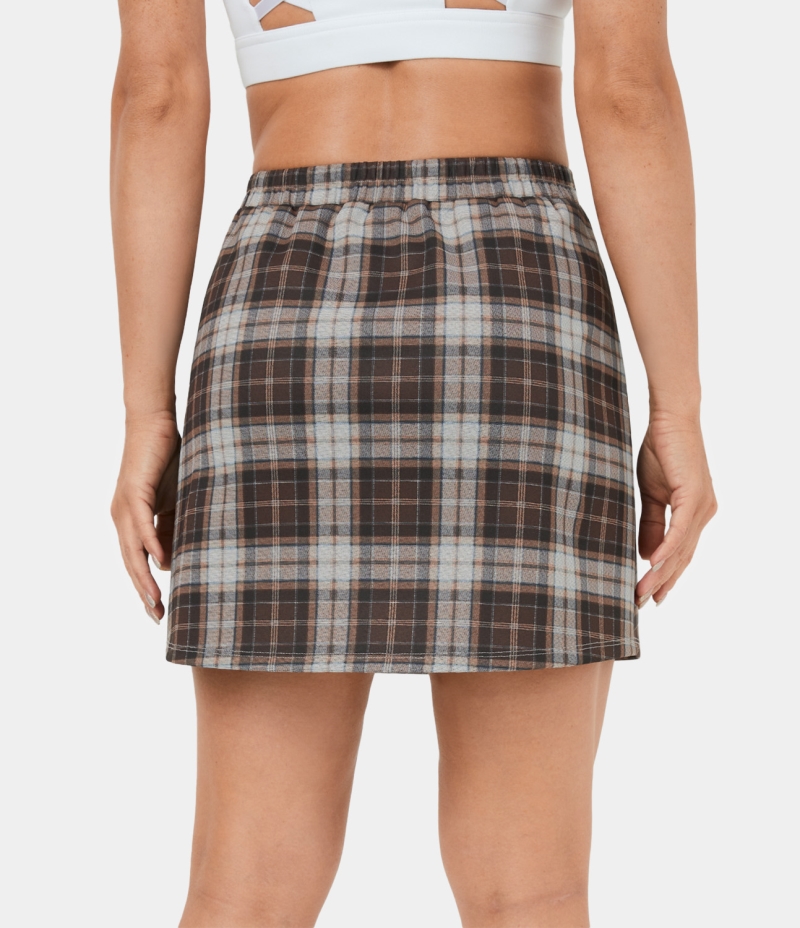 :: Halara High Waisted 2-in-1 Side Pocket Plaid A Line Mini Casual Women's Skirts Brown Plaid | 152486-LVD