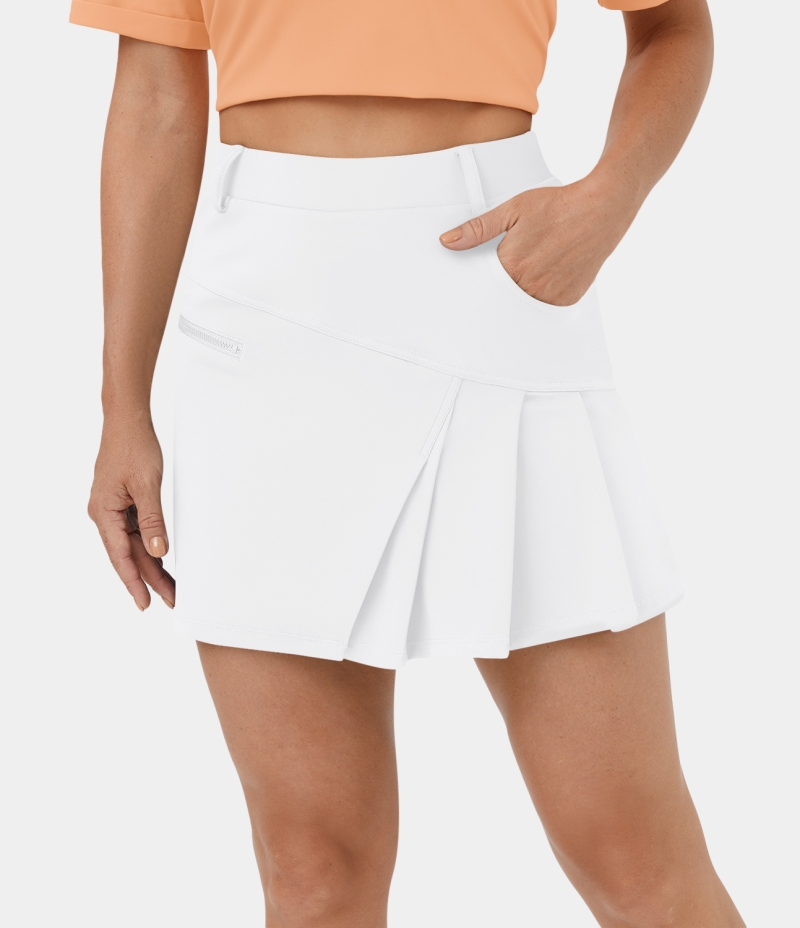 :: Halara High Waisted 2-in-1 Side Pocket Pleated Golf Women's Skirts White | 568123-JTE