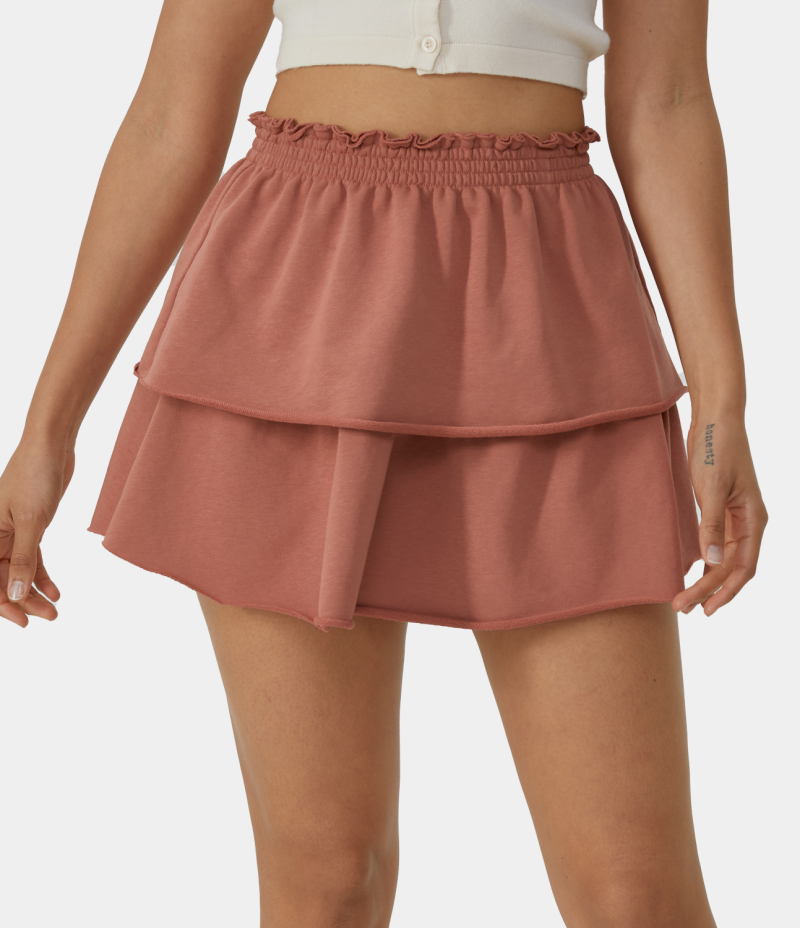 :: Halara High Waisted 2-Layered Ruffle A Line Mini Women's Skirts Dark Salmon | FTGMUYK-23