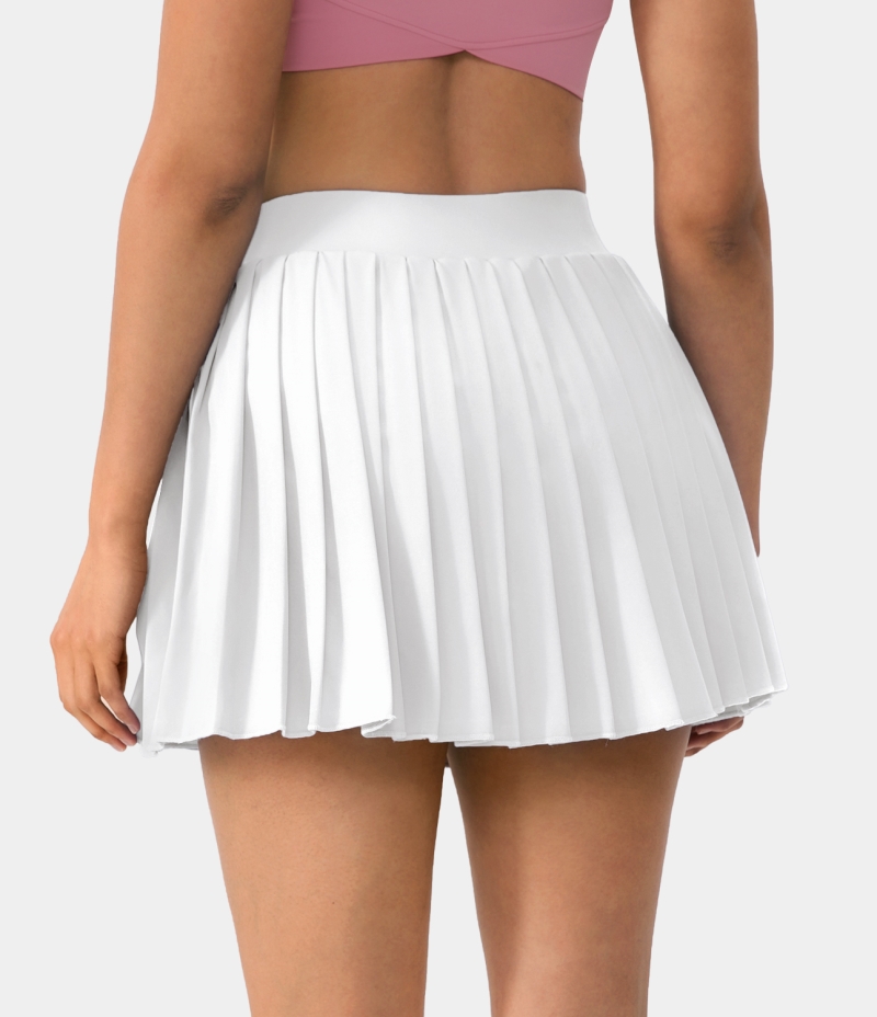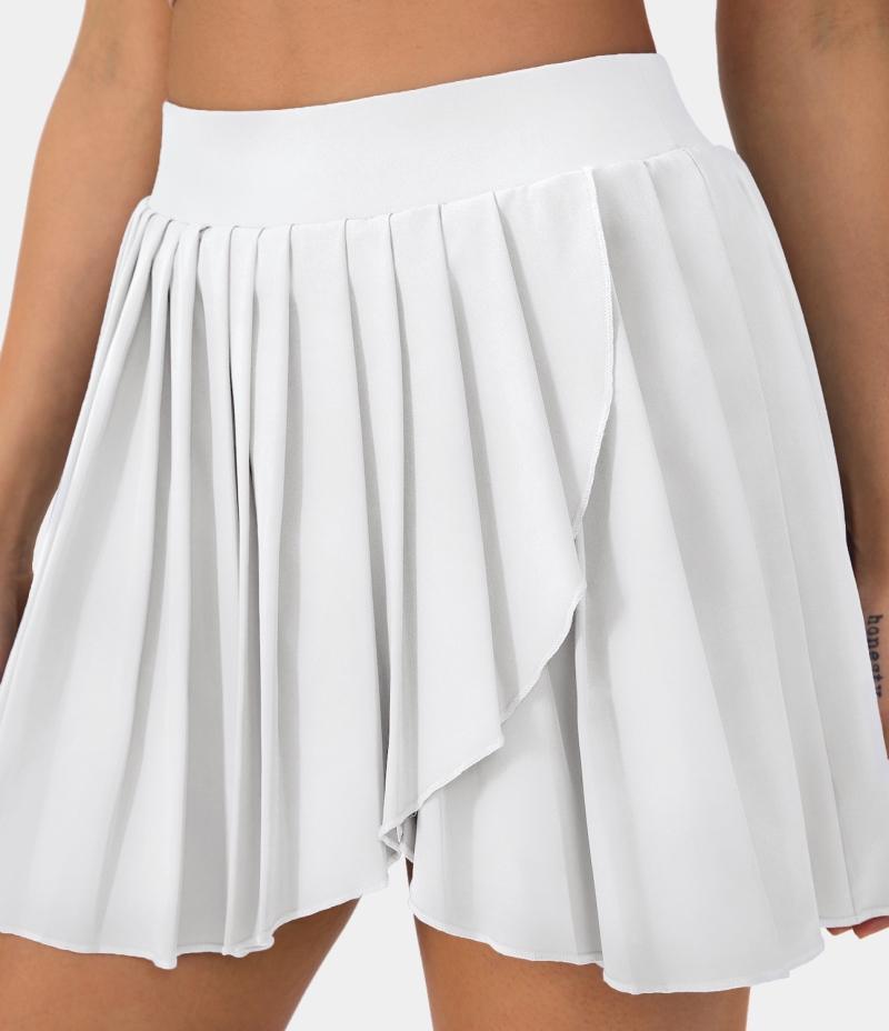 :: Halara High Waisted Asymmetric Pleated 2-in-1 Tennis Women's Skirts White | 924875-CQB