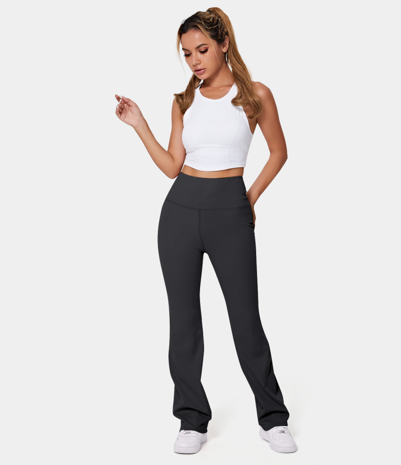 :: Halara High Waisted Back Pocket Plain Slight Flare Women's Leggings Black | 602739-DCO