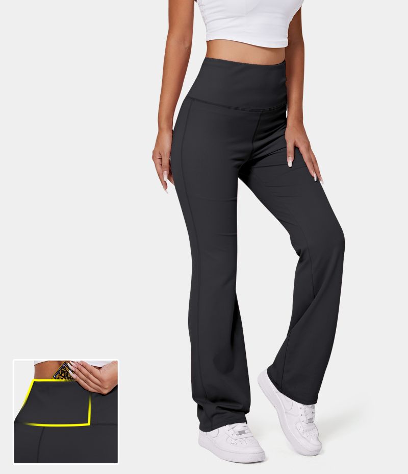:: Halara High Waisted Back Pocket Plain Slight Flare Women's Leggings Black | 760835-RPK