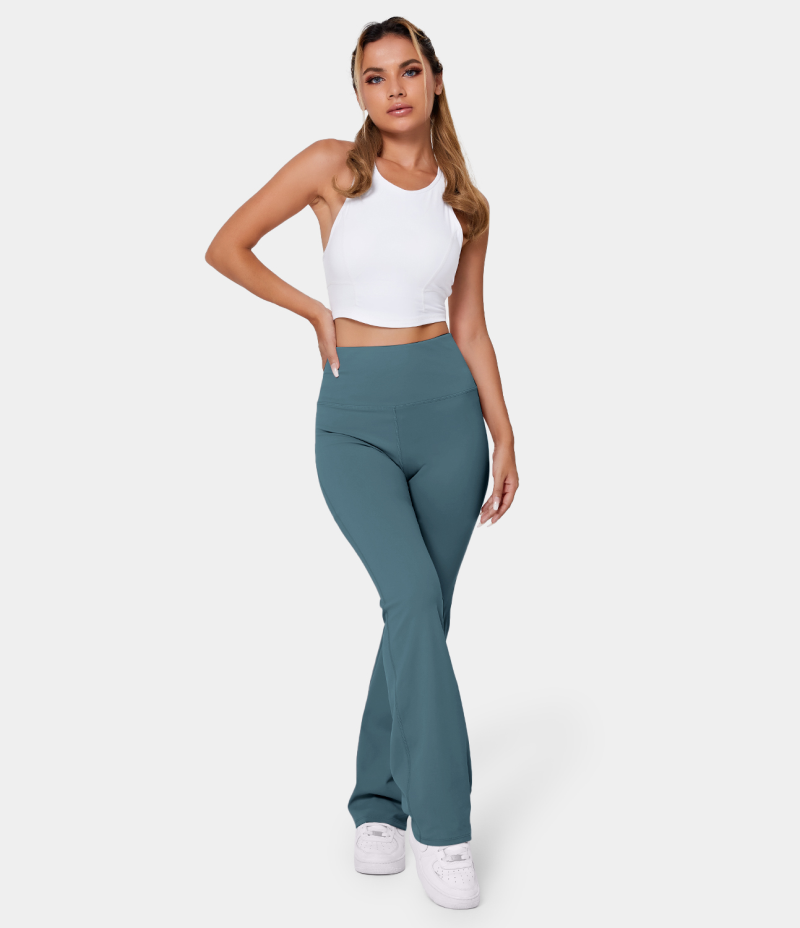 :: Halara High Waisted Back Pocket Plain Slight Flare Women's Leggings Blue Ashes | 106572-QRT