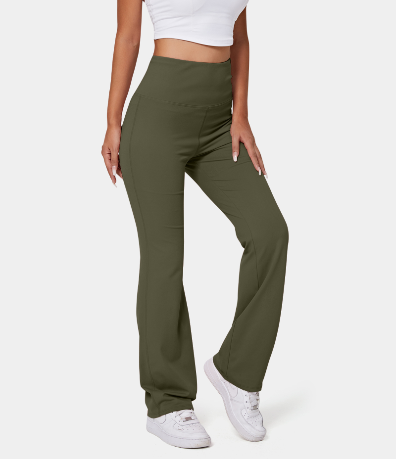 :: Halara High Waisted Back Pocket Plain Slight Flare Women's Leggings Ivy Green | 918704-YXD