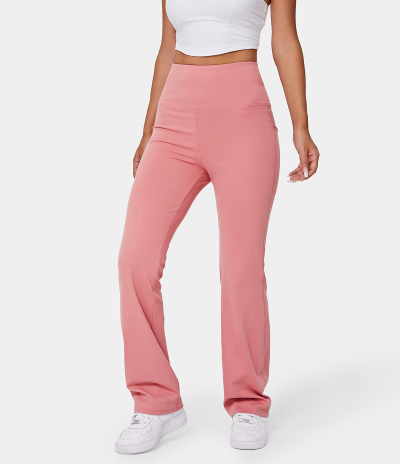 :: Halara High Waisted Back Pocket Plain Slight Flare Women's Leggings Pink Icing | 207651-ZET