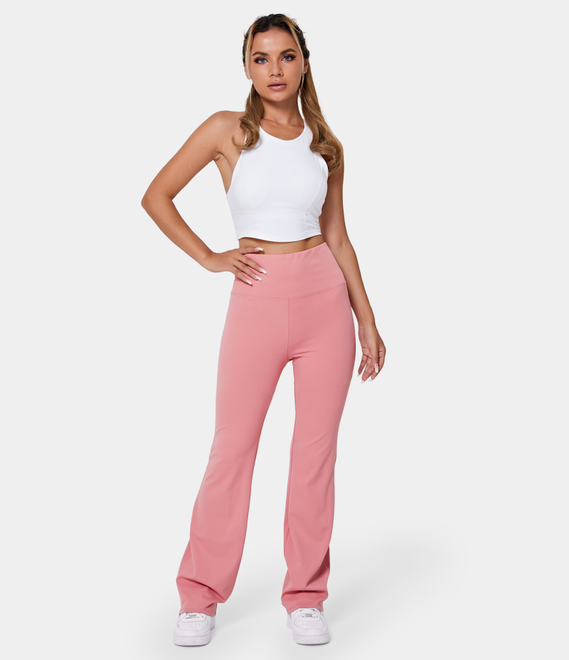 :: Halara High Waisted Back Pocket Plain Slight Flare Women's Leggings Pink Icing | 506984-JWM