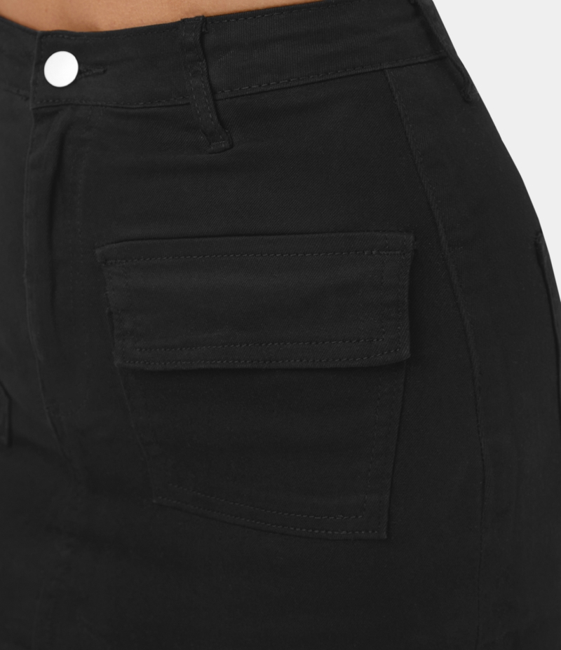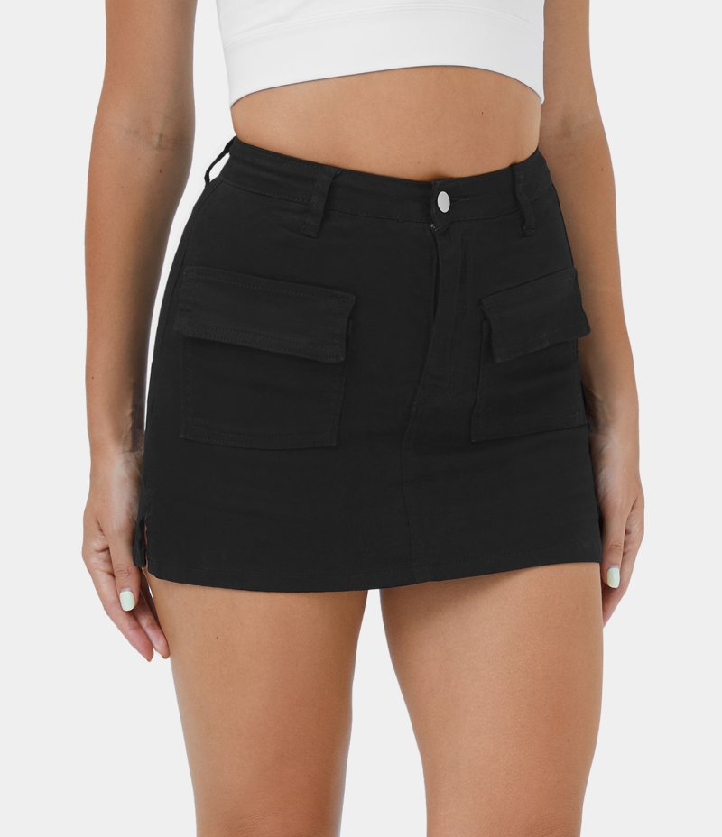 :: Halara High Waisted Belted Button Zipper Pocket 2-in-1 A Line Casual Women's Skirts Black | 316078-IAK