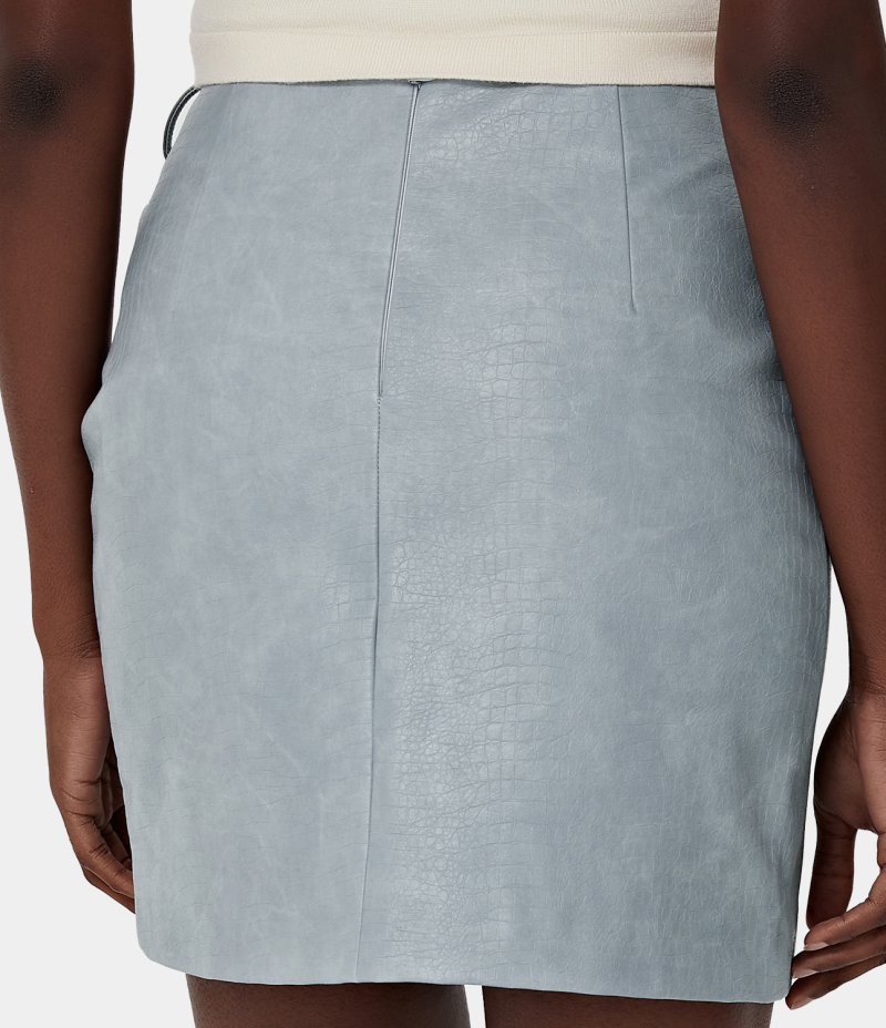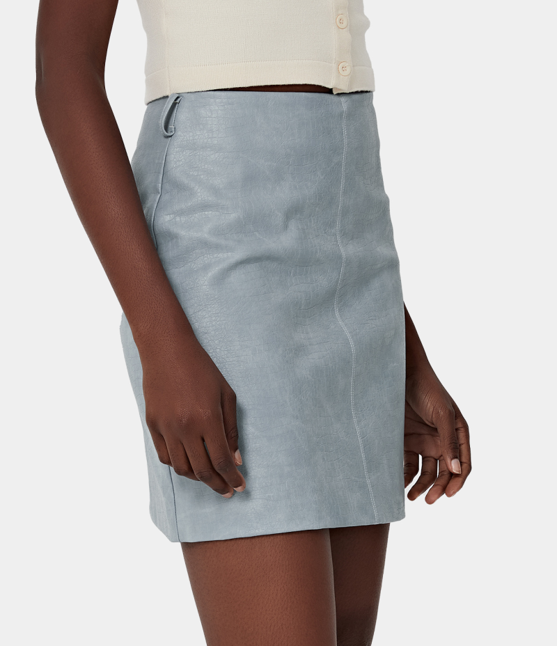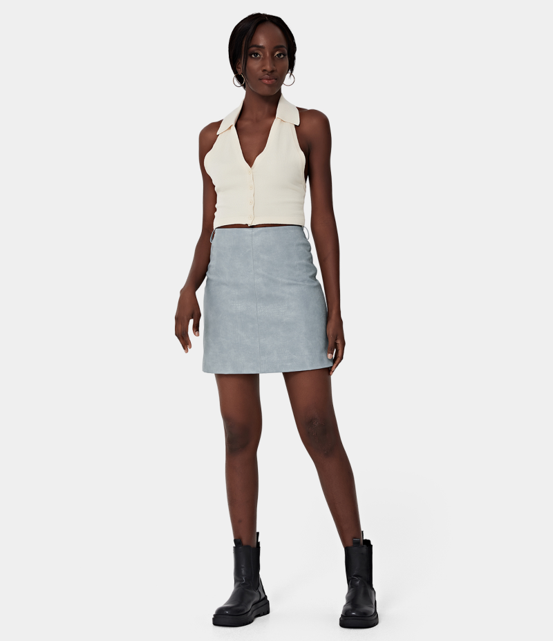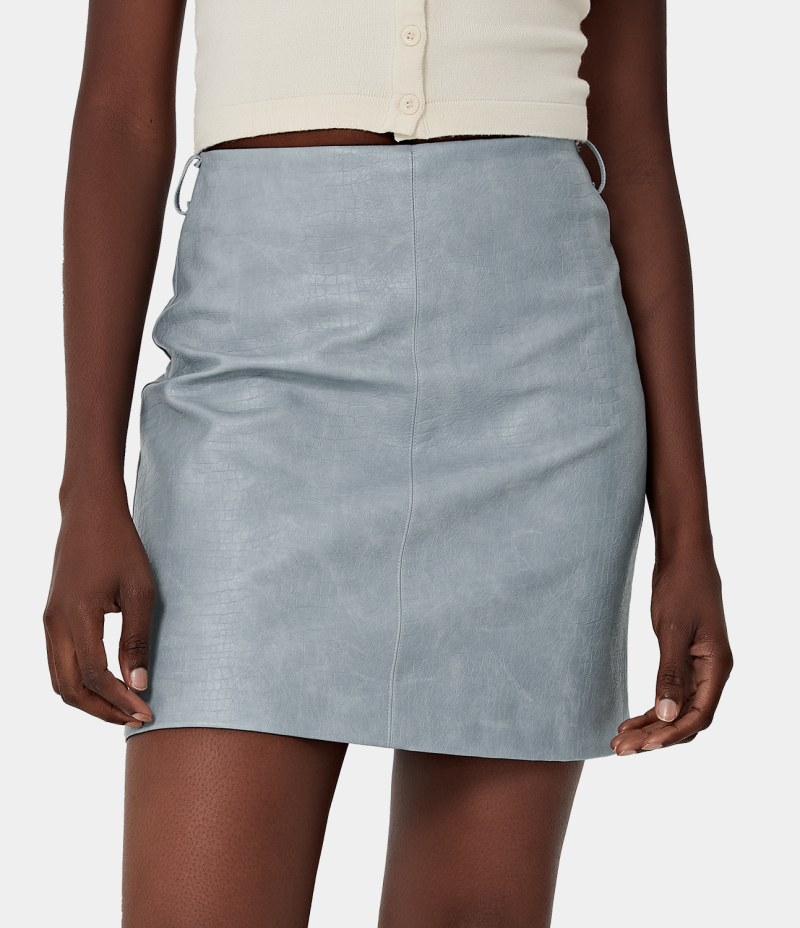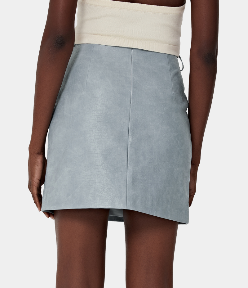 :: Halara High Waisted Belted PU Leather Plain Mini Women's Skirts Deep Powder Blue | 490587-IJT