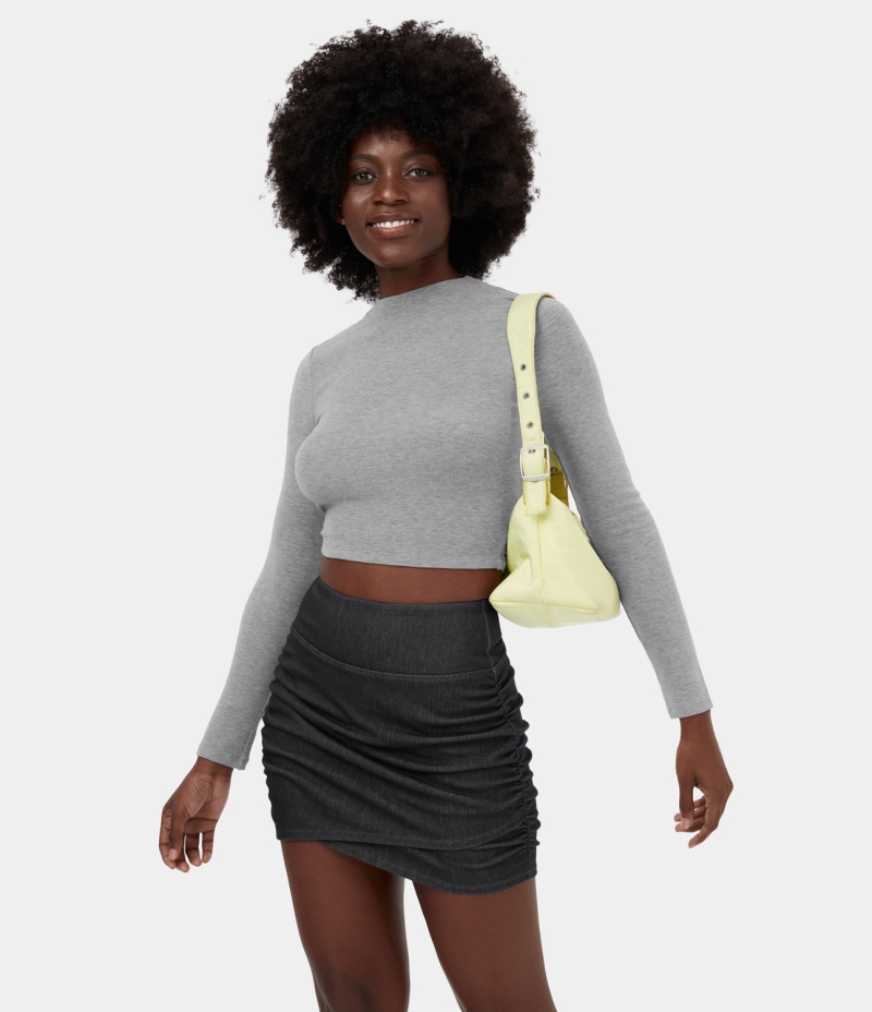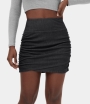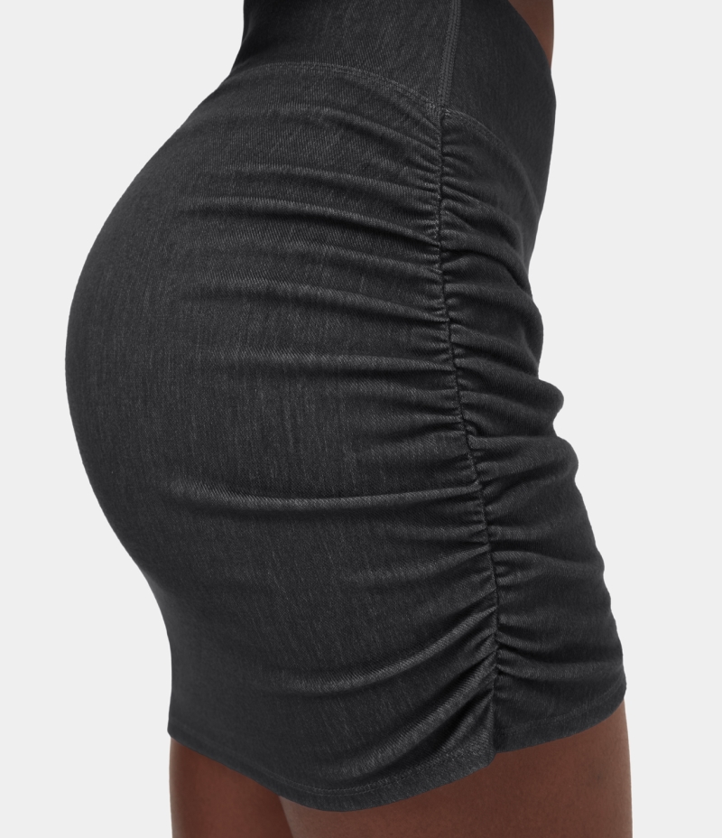 :: Halara High Waisted Bodycon Stretchy Knit Denim Mini Ruched Casual Women's Skirts Black | 217365-NIE