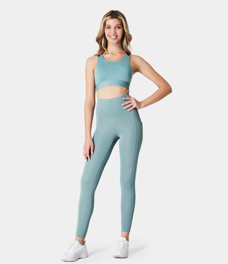 :: Halara High Waisted Butt Lifting Deep Side Pocket 7/8 Women's Leggings Ice Blue | 295017-DUG