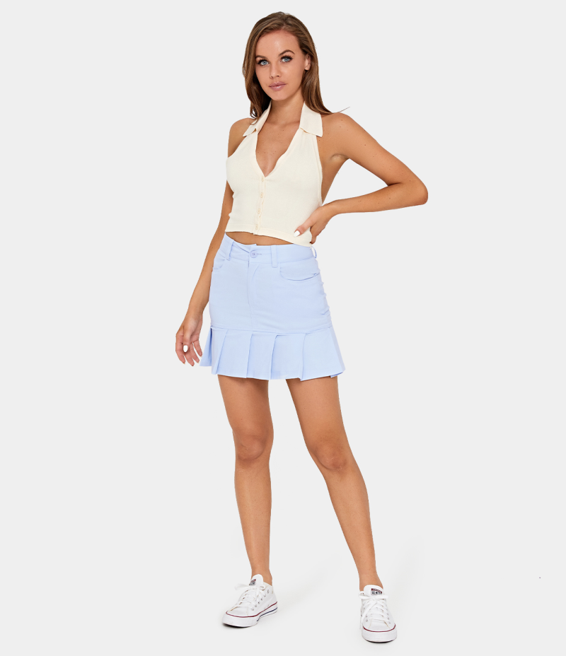 :: Halara High Waisted Button Half Zip Pleated Hem Mini Women's Skirts Sky Blue | 093658-RHV