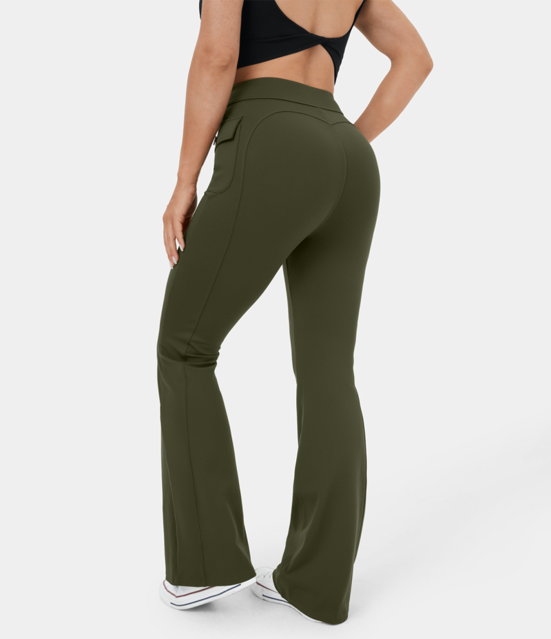 :: Halara High Waisted Button Side Flap Pocket Flare Casual Cargo Women's Pants Ivy Green | 438760-GMA
