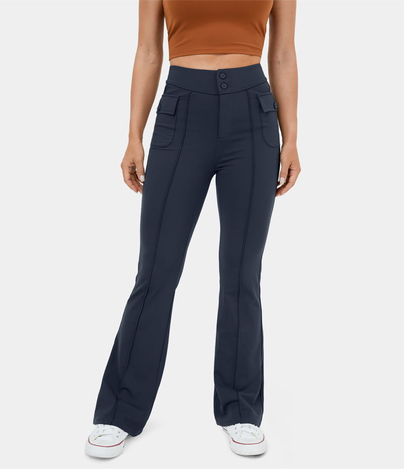 :: Halara High Waisted Button Side Flap Pocket Flare Casual Cargo Women's Pants Oceana | 016843-RBG