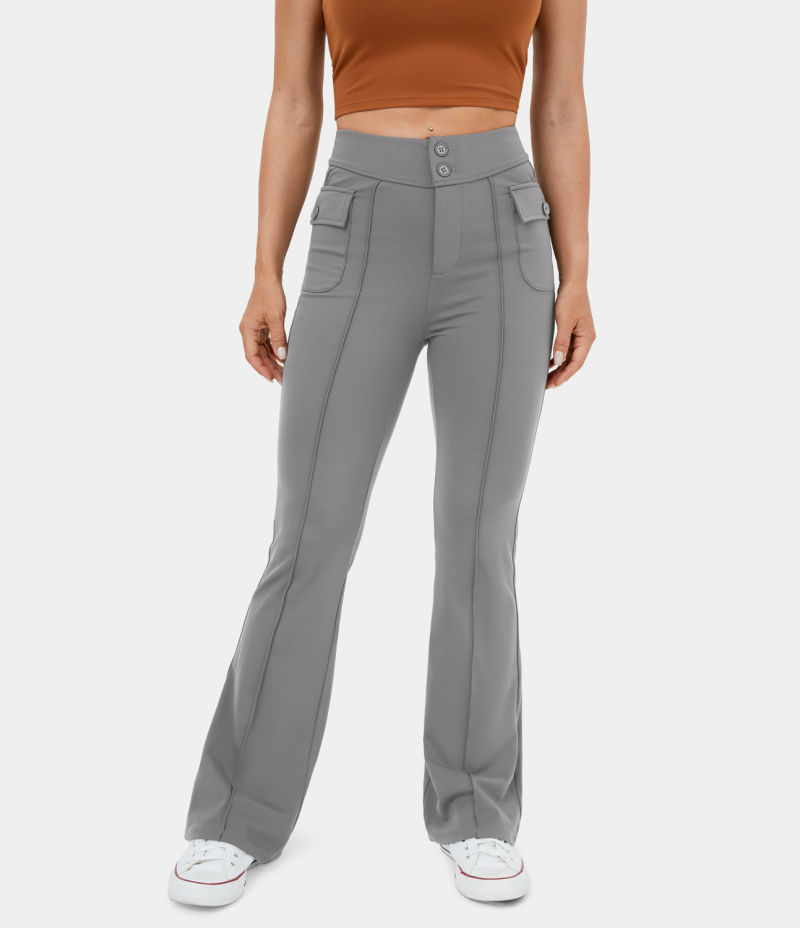 :: Halara High Waisted Button Side Flap Pocket Flare Casual Cargo Women's Pants Wet Weather | 925874-MCK