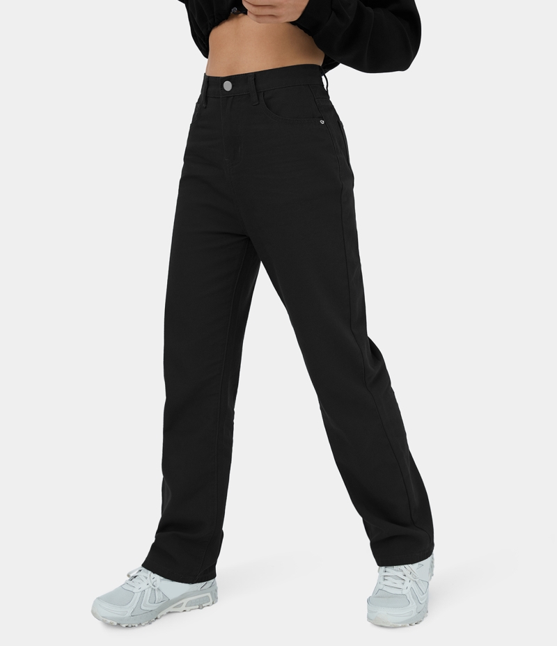:: Halara High Waisted Button Zipper Multiple Pockets Casual Women's Pants Black | 293485-PWY