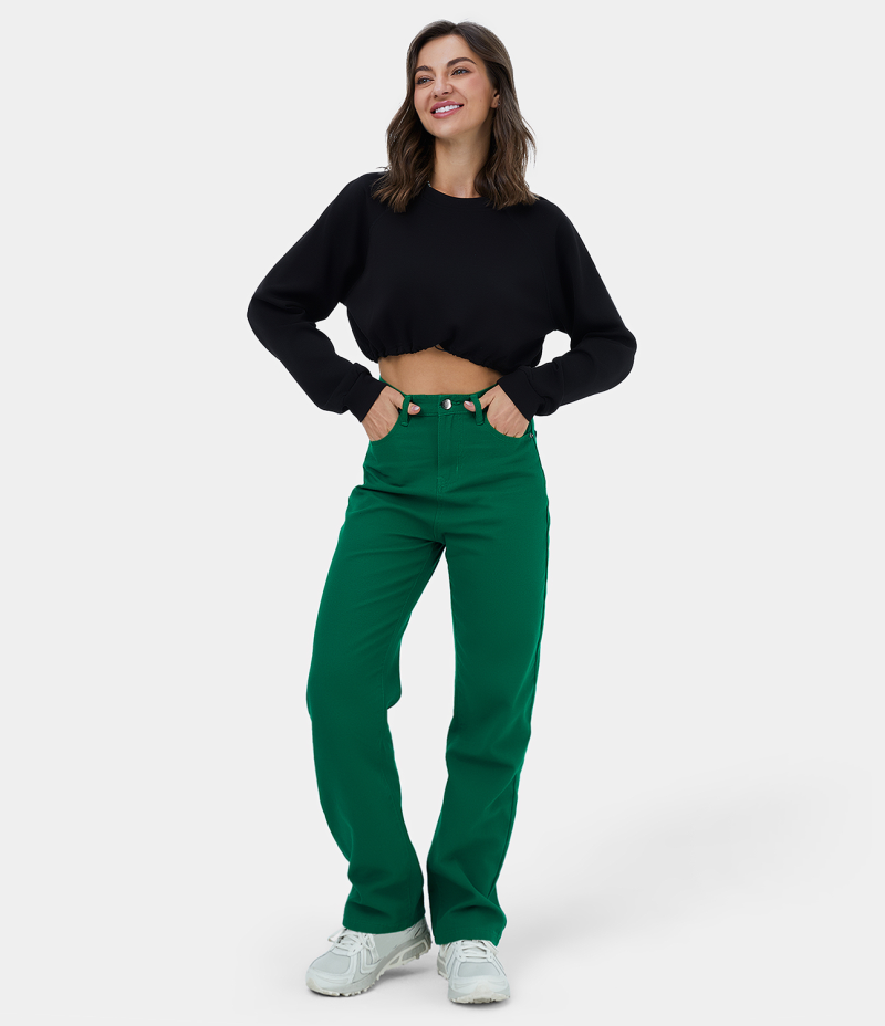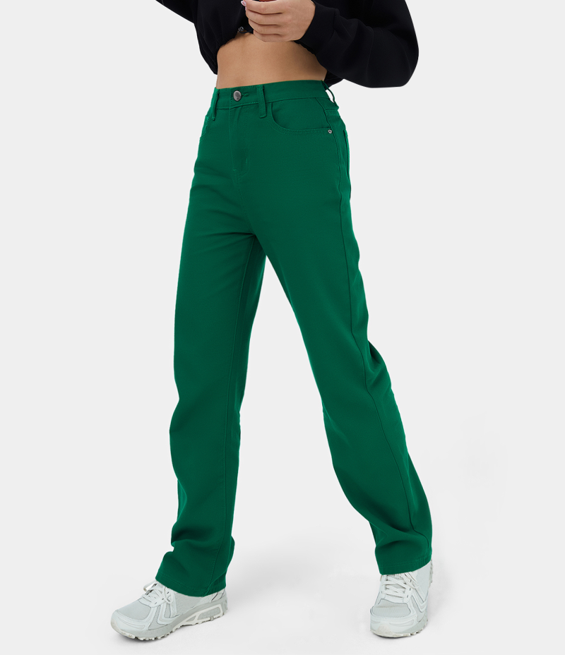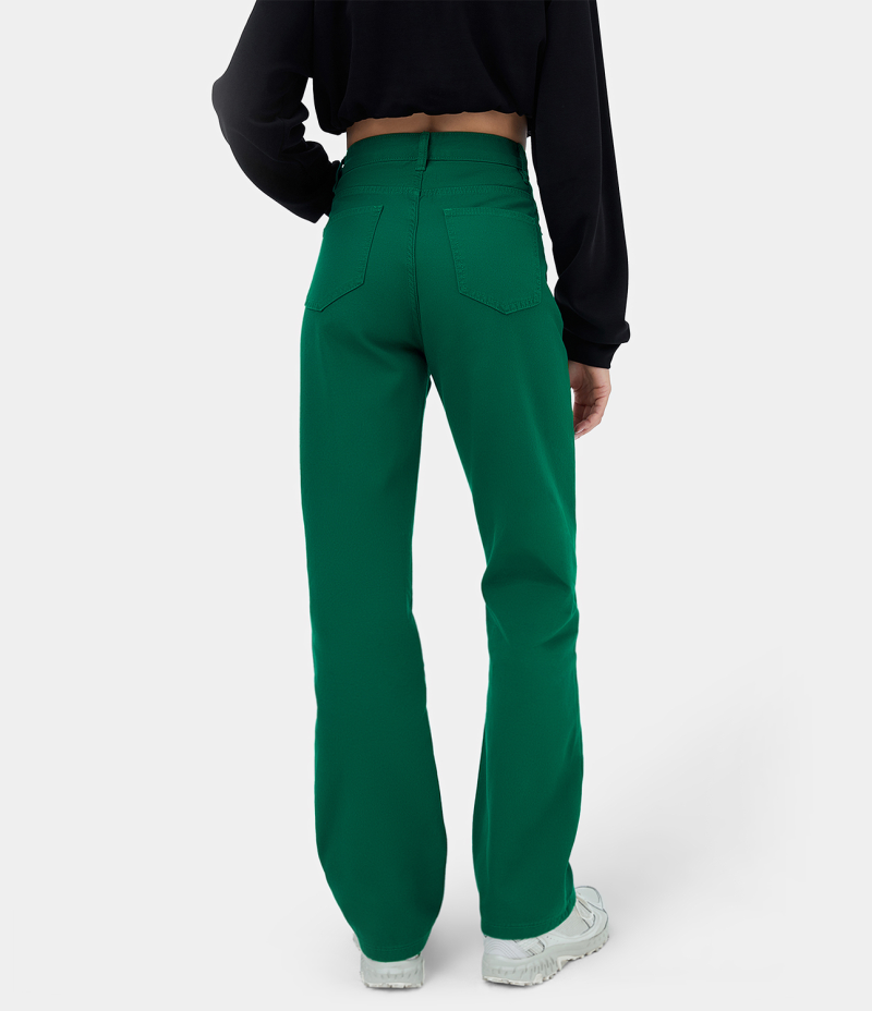 :: Halara High Waisted Button Zipper Multiple Pockets Casual Women's Pants Cadmium Green | 268095-TZN