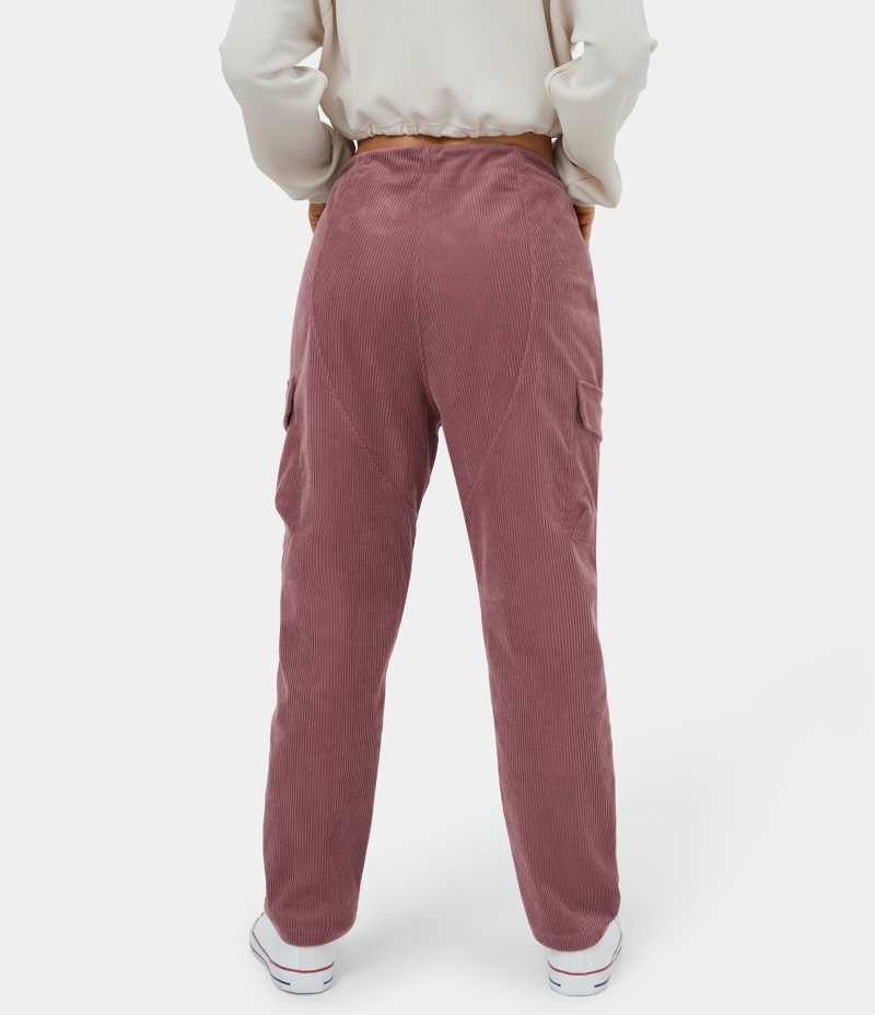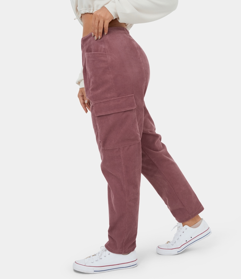 :: Halara High Waisted Button Zipper Multiple Pockets Corduroy Casual Women's Pants Rose Brown | 175496-SBZ