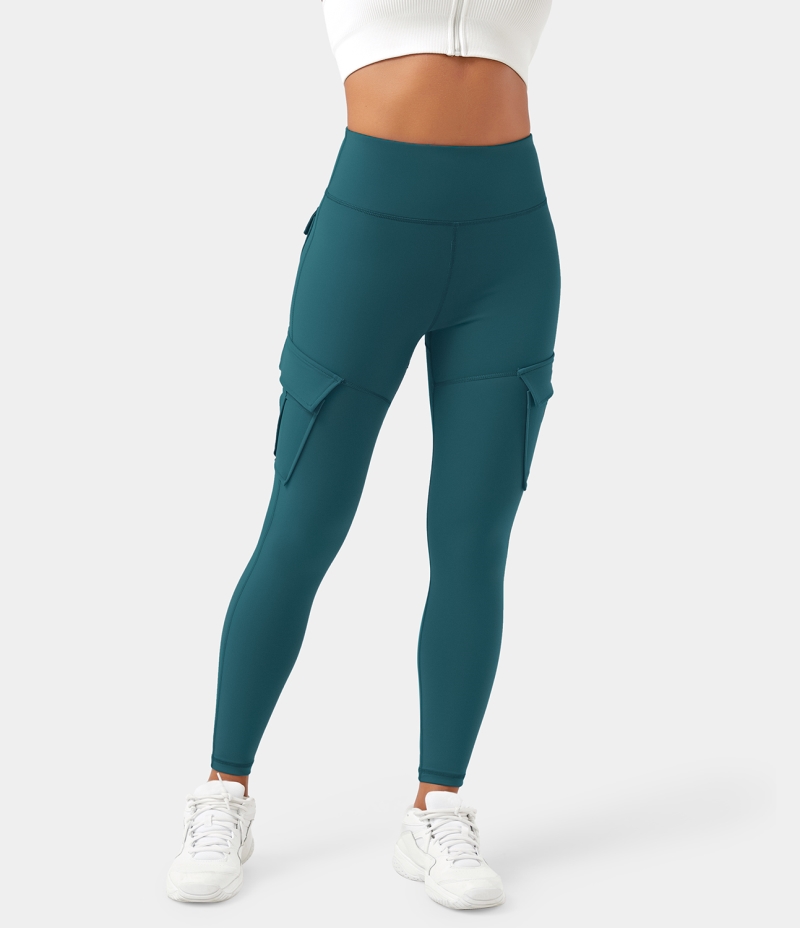 :: Halara High Waisted Cargo Pocket Skinny Yoga 7/8 Women's Leggings Aegean Blue | 195860-BLA