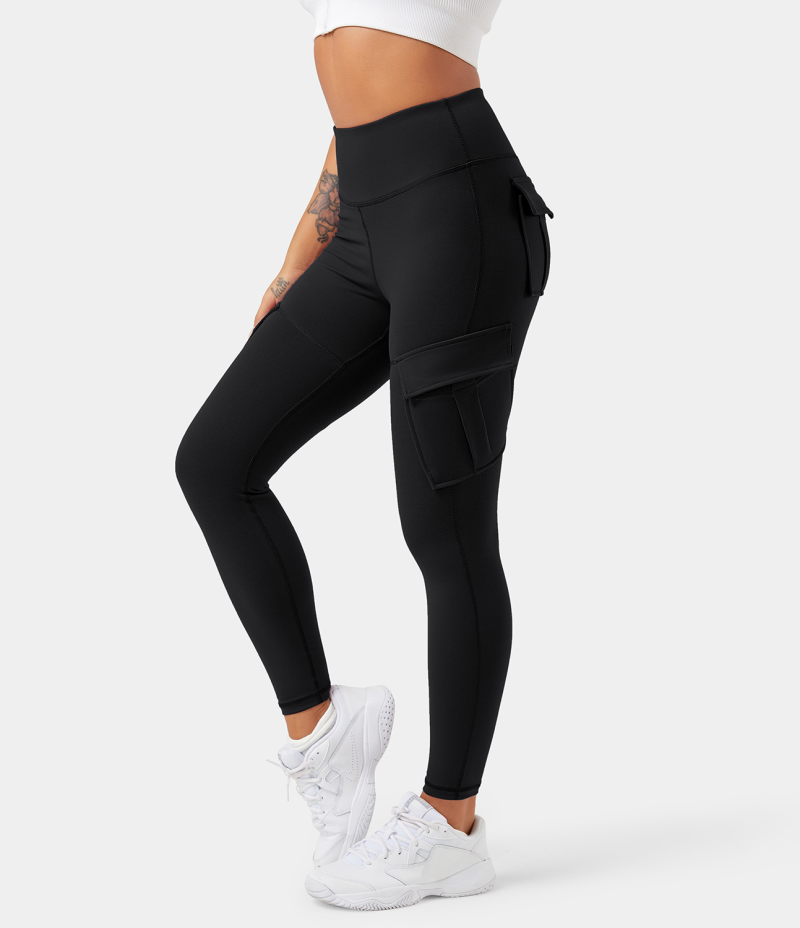 :: Halara High Waisted Cargo Pocket Skinny Yoga 7/8 Women's Leggings Black | 507486-IUJ