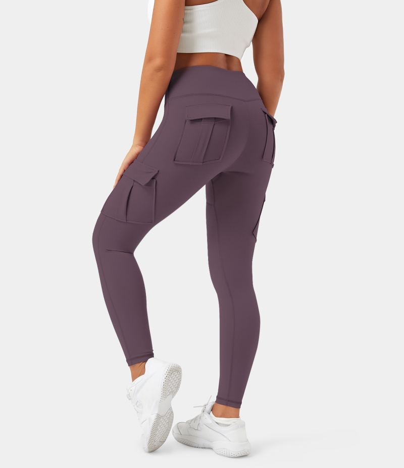 :: Halara High Waisted Cargo Pocket Skinny Yoga 7/8 Women's Leggings Dark Plum | 034789-VBC