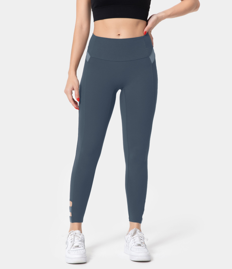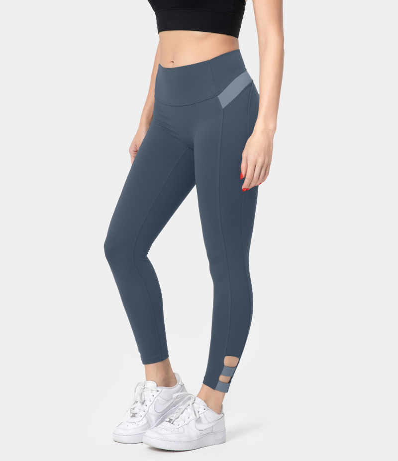 :: Halara High Waisted Color Block Cut Out Women's Leggings Blue Grey | 863427-AFM