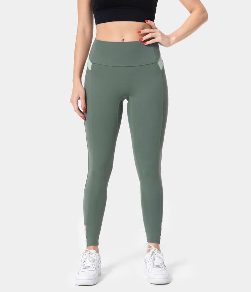 :: Halara High Waisted Color Block Cut Out Women's Leggings Too Hot to Handle - Jade | 203485-LUJ
