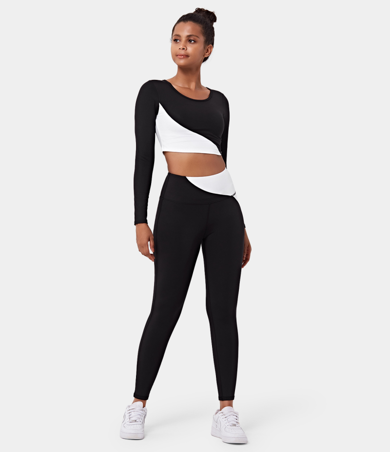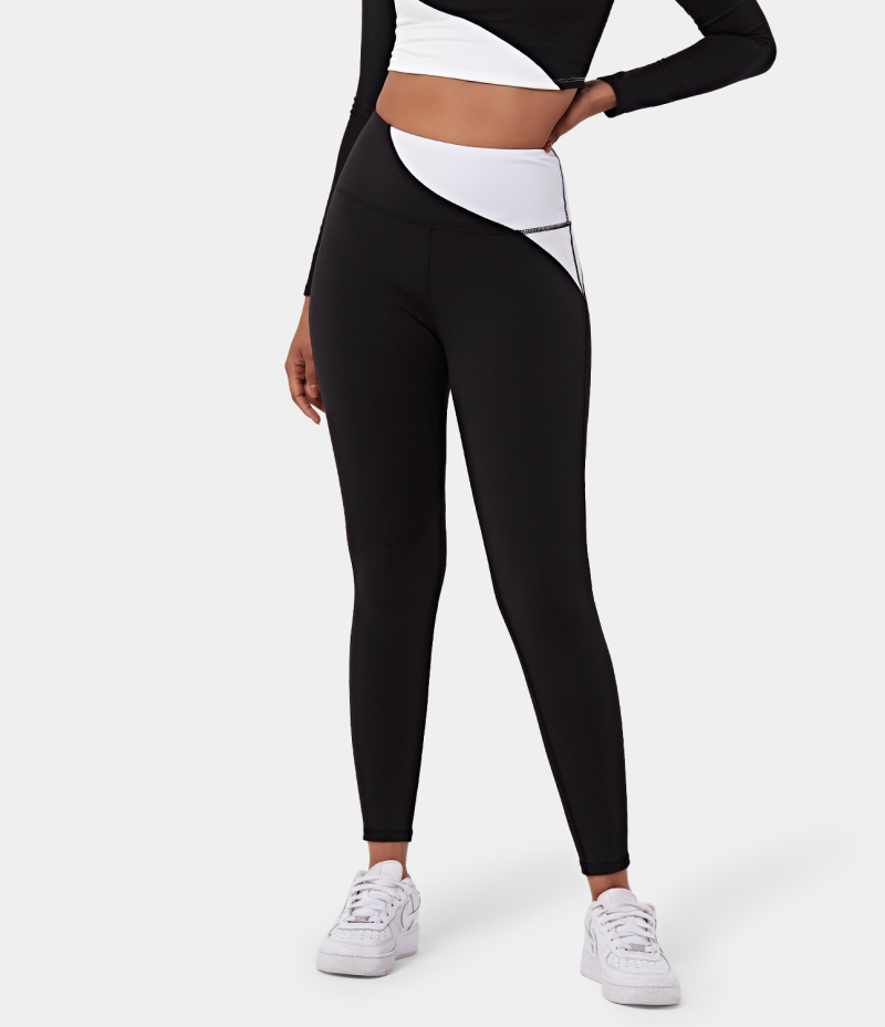 :: Halara High Waisted Color Block Yoga 7/8 Women's Leggings White | 270438-HVI