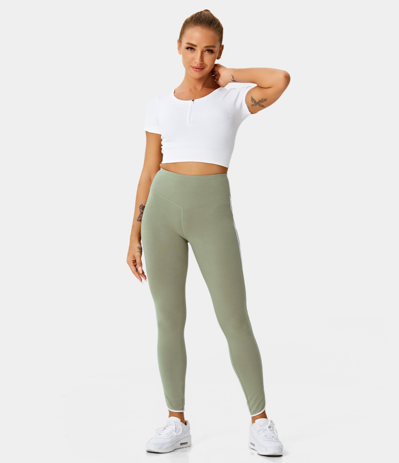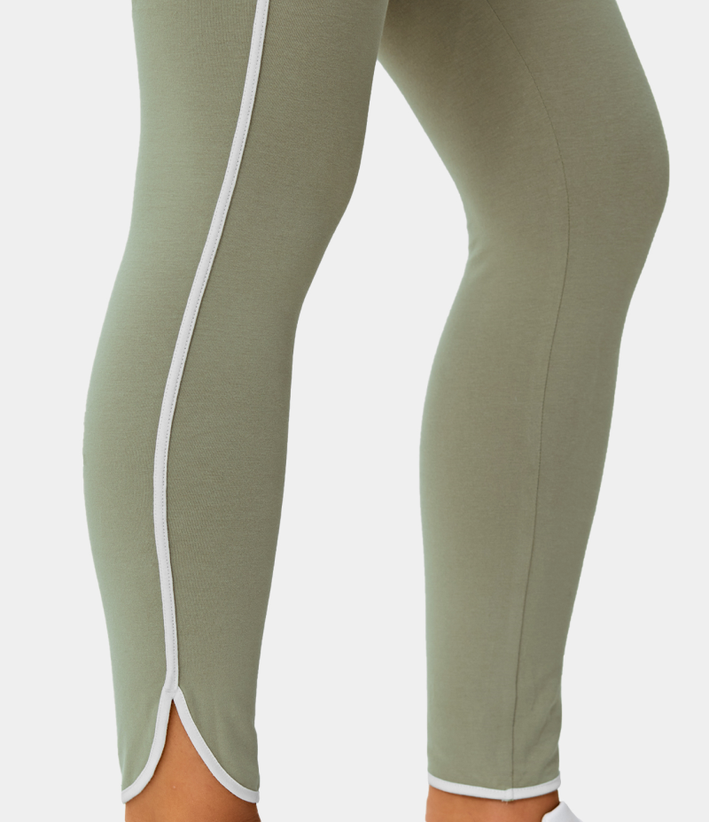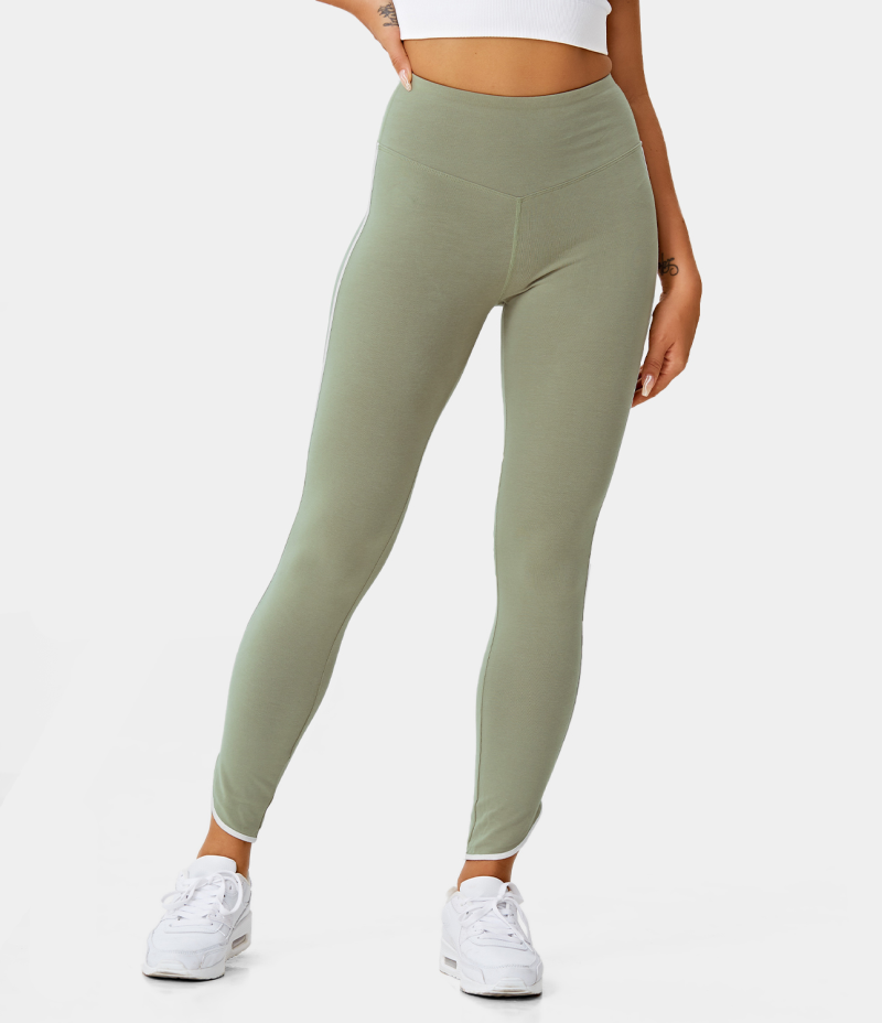 :: Halara High Waisted Contrast Trim Plain Full Length Women's Leggings Deep Lichen Green | 532791-EWN