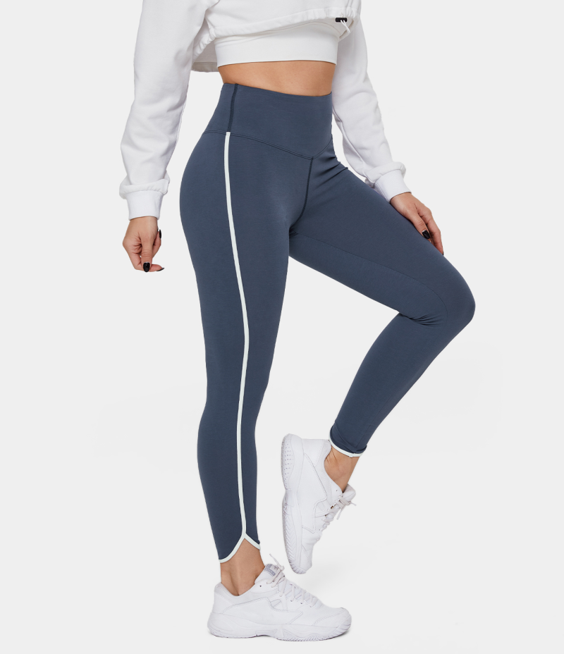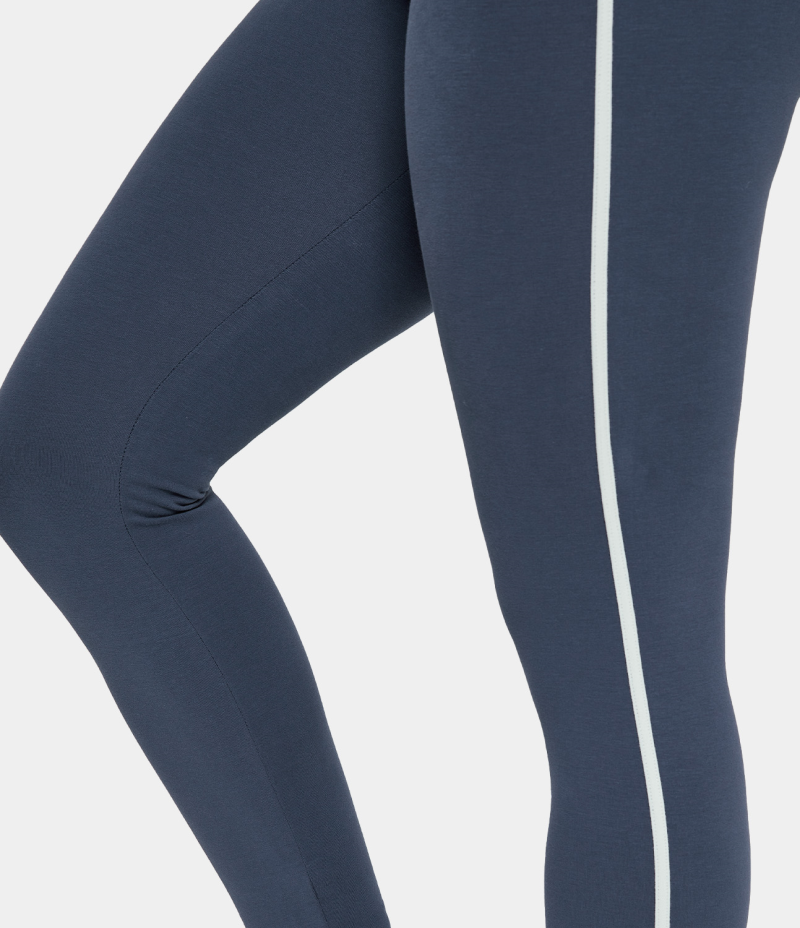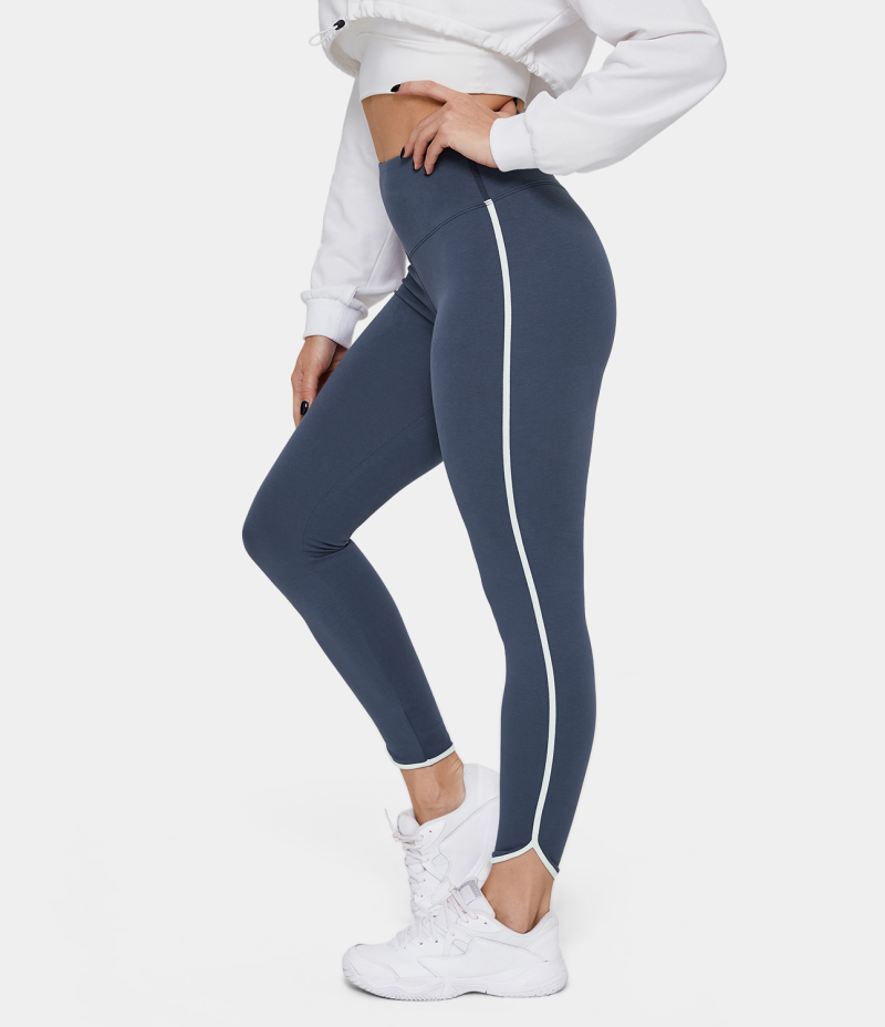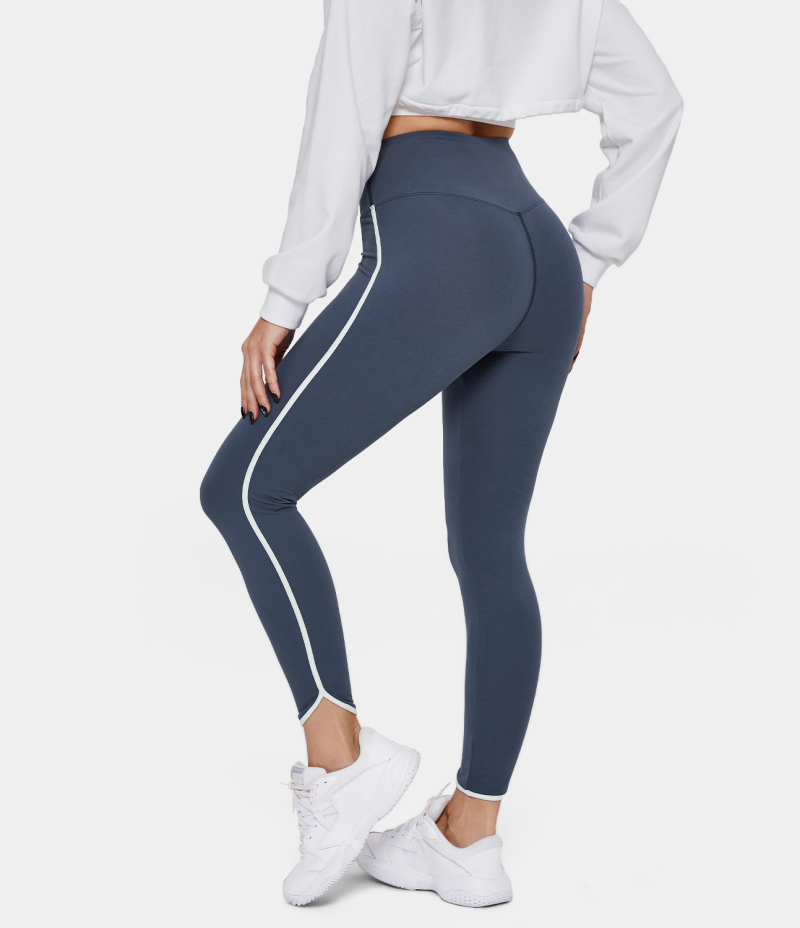 :: Halara High Waisted Contrast Trim Plain Full Length Women's Leggings Twilight Blue | 243681-PYR