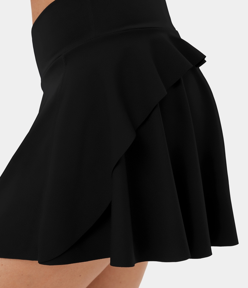 :: Halara High Waisted Crossover 2-in-1 Side Pocket Flare Tennis Women's Skirts Black | 318407-WKV