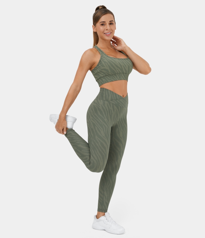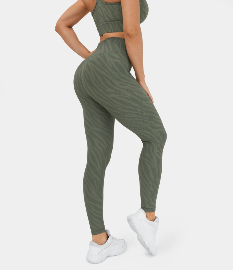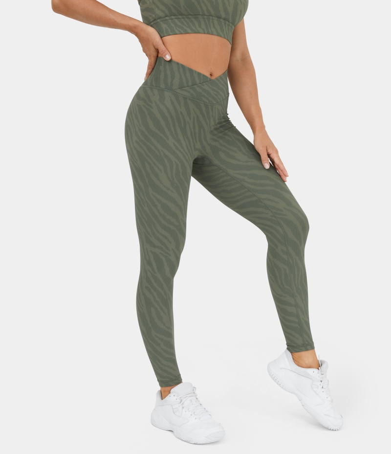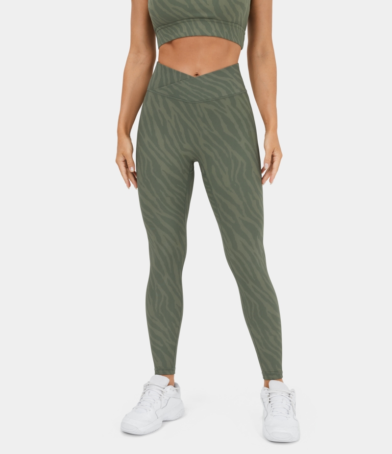 :: Halara High Waisted Crossover Animal Print Yoga 7/8 Women's Leggings Green Zebra Stripe | 396754-DSV