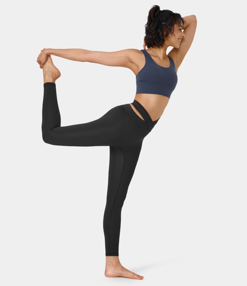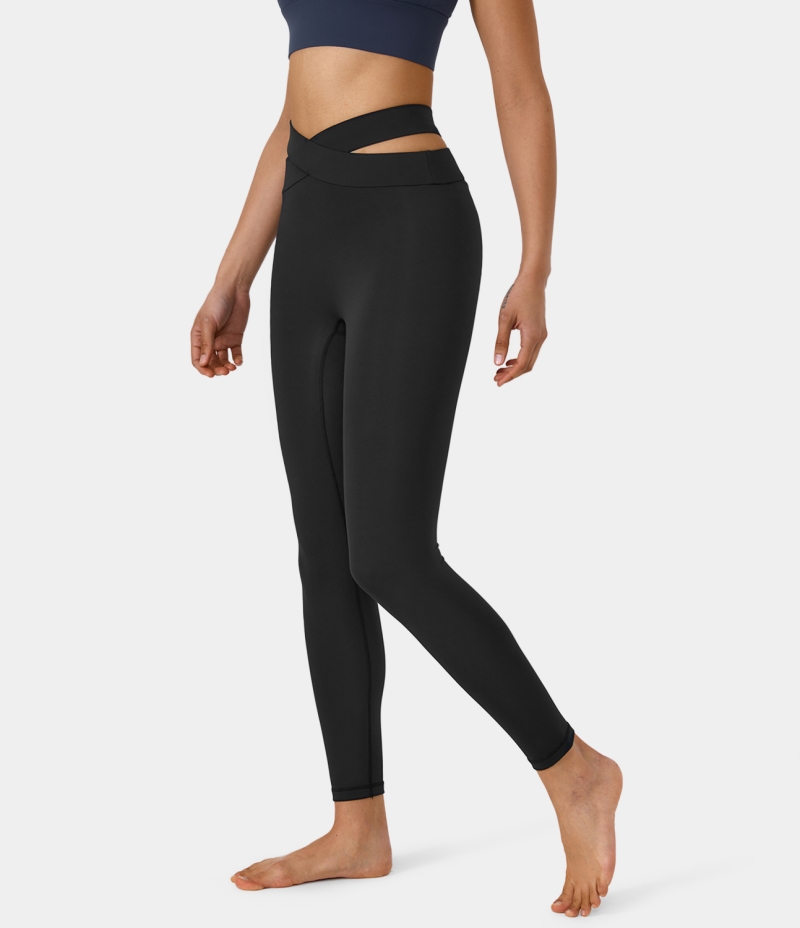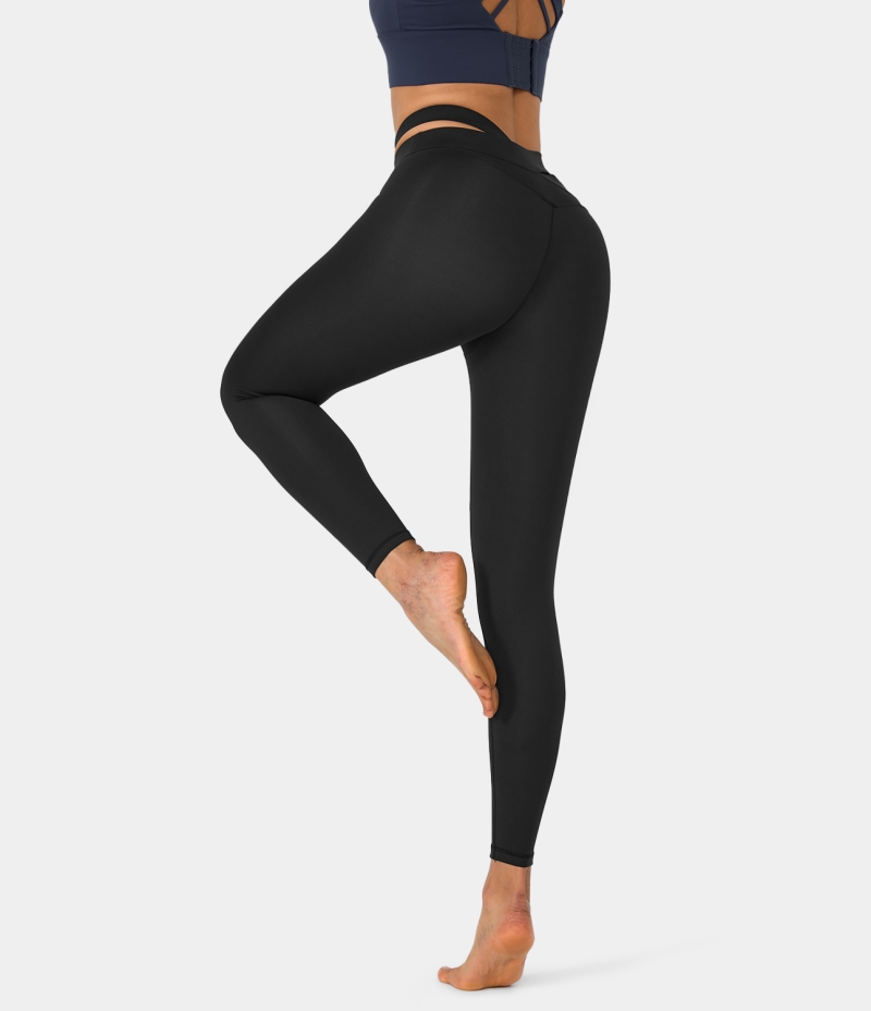 :: Halara High Waisted Crossover Cut Out 7/8 Yoga Women's Leggings Black | 379518-ENK