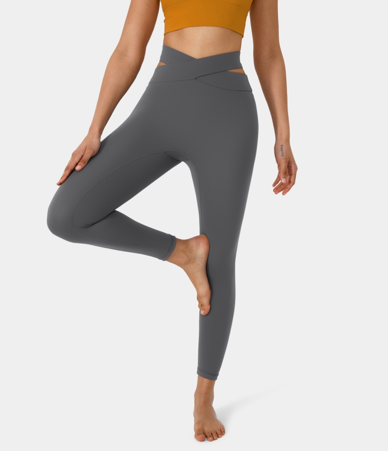 Halara High Waisted Crossover Cut Out 7/8 Yoga Women's Leggings India Ink | 706253-CMH