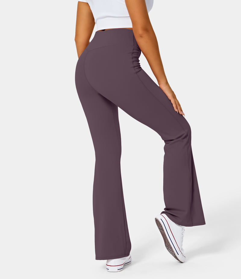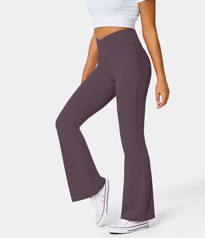:: Halara High Waisted Crossover Flare Yoga Women's Leggings Dark Plum | 731698-VGH