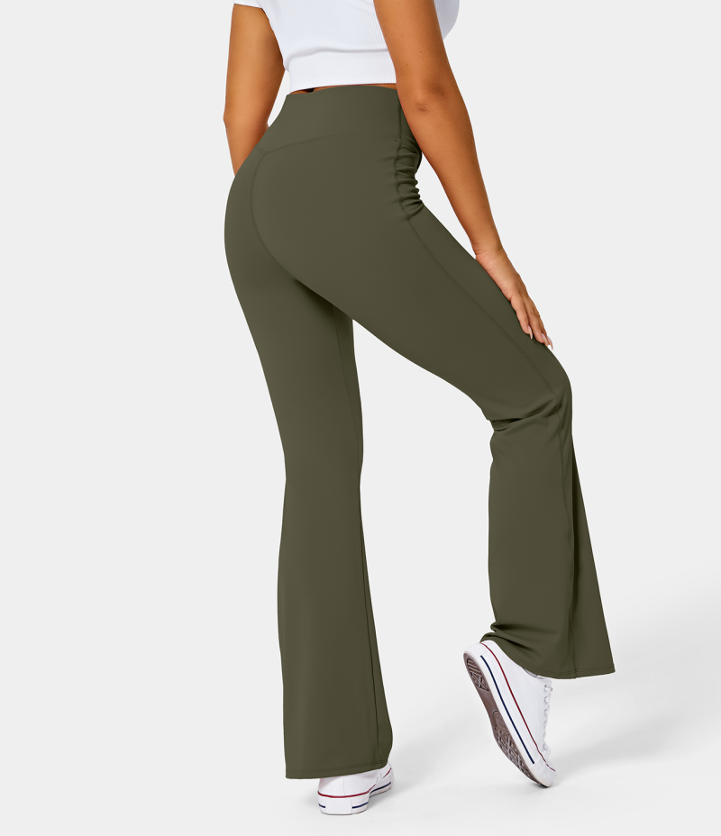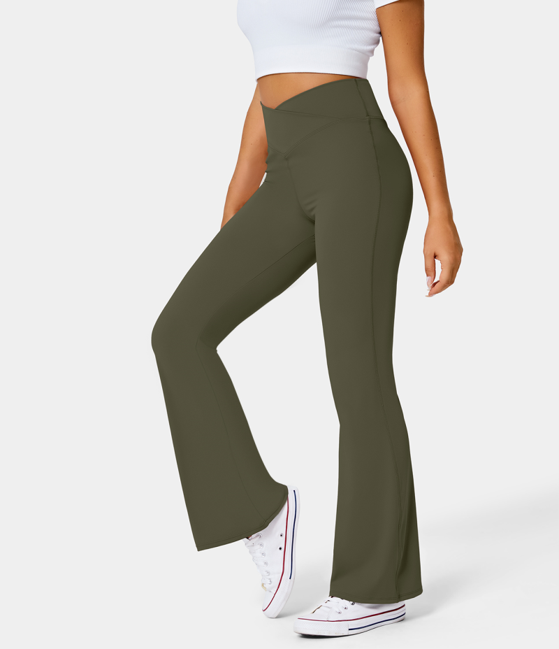 :: Halara High Waisted Crossover Flare Yoga Women's Leggings Ivy Green | 843790-ELQ