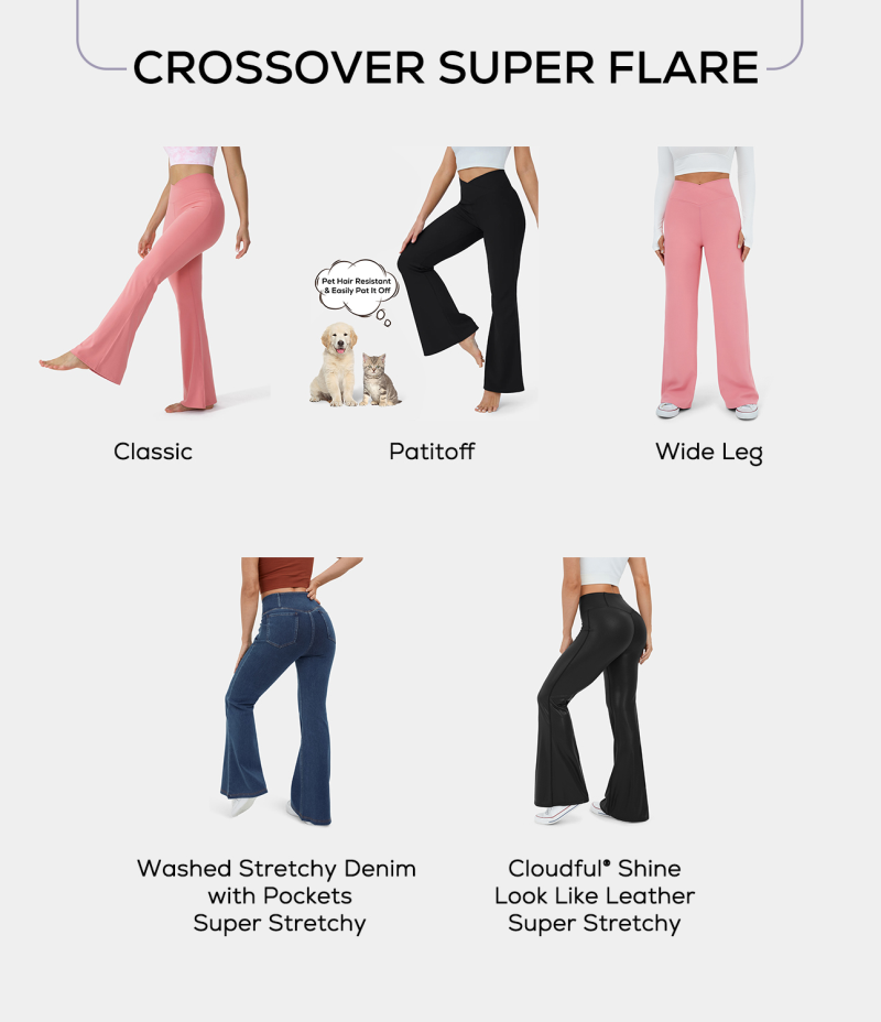 Halara High Waisted Crossover Pocket Washed Stretchy Knit Denim Casual Super Flare Women's Pants Washed Denim Dark Blue | 246379-SYE