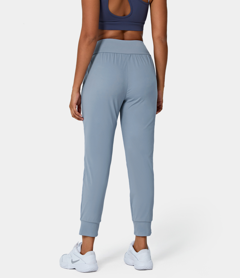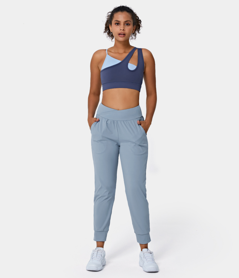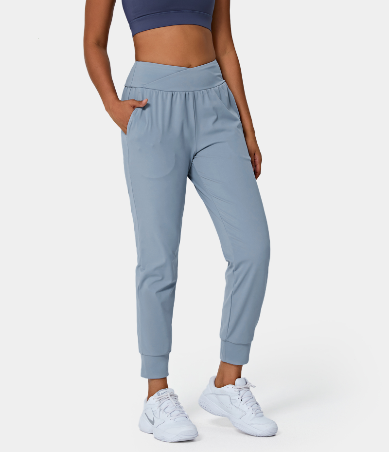 :: Halara High Waisted Crossover Side Pocket Ruched Slimming Women's Jogger Light Baby Blue | 092613-ZSV