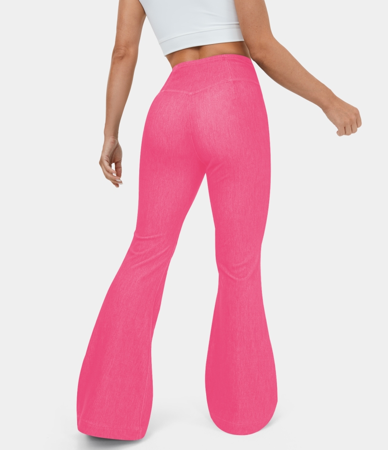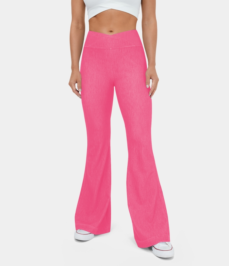 :: Halara High Waisted Crossover Stretchy Knit Denim Casual Flare Women's Pants Camellia Rose | 925308-GET