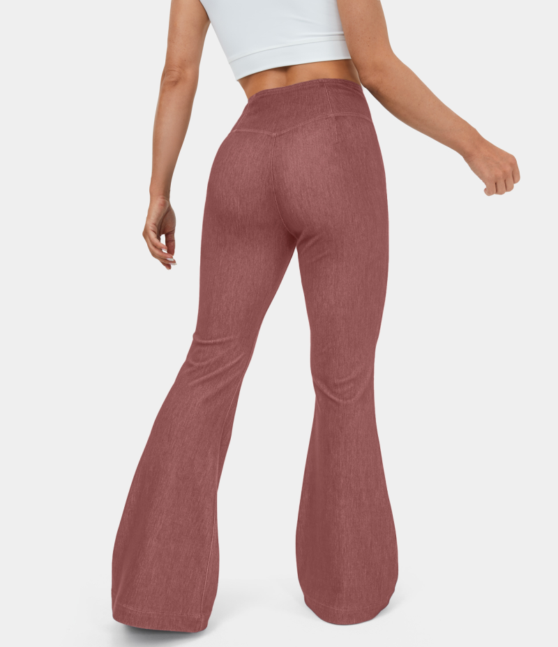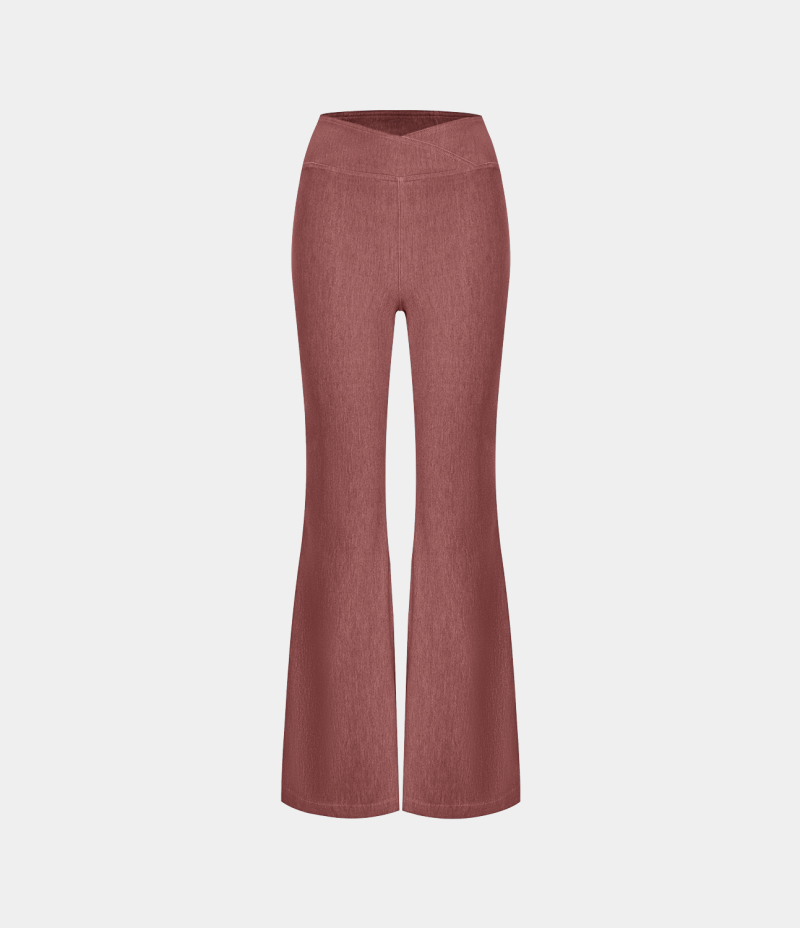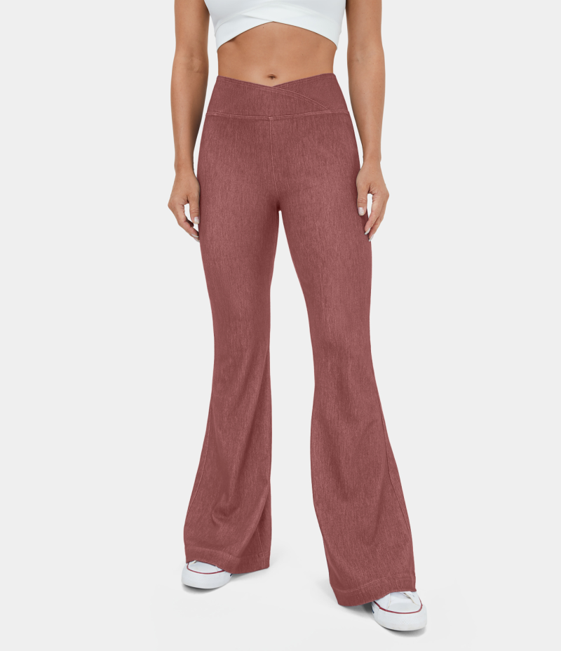 :: Halara High Waisted Crossover Stretchy Knit Denim Casual Flare Women's Pants Marsala | 369124-MHI