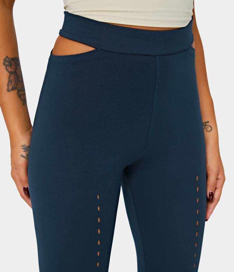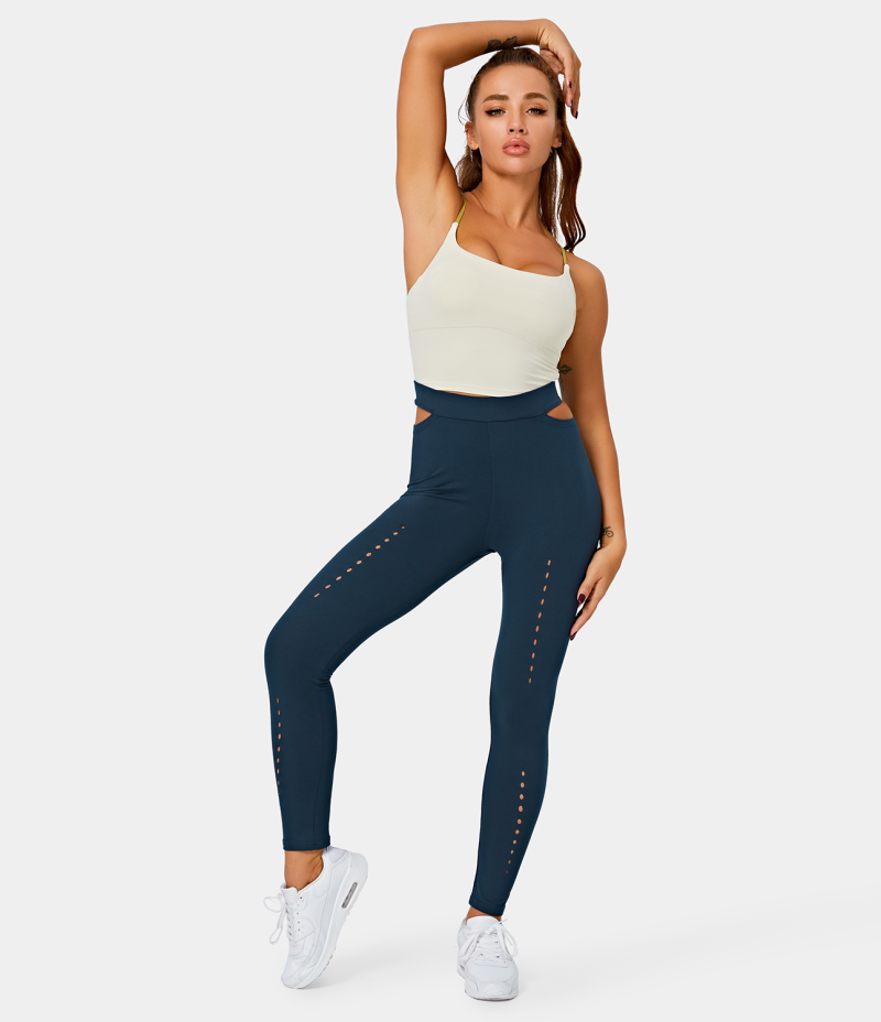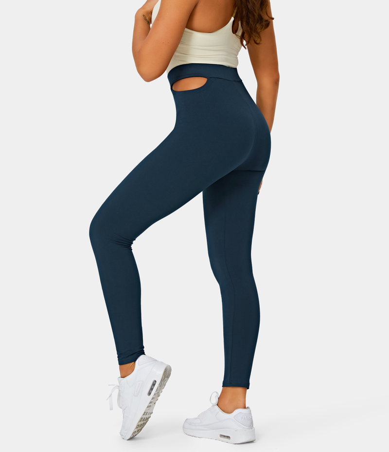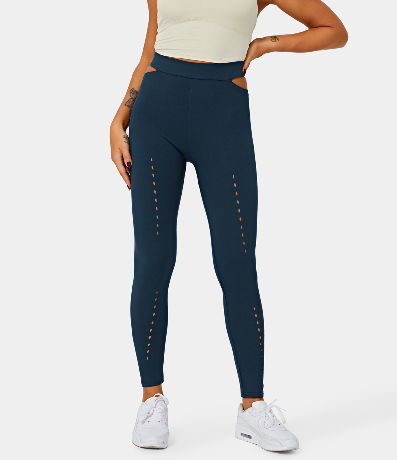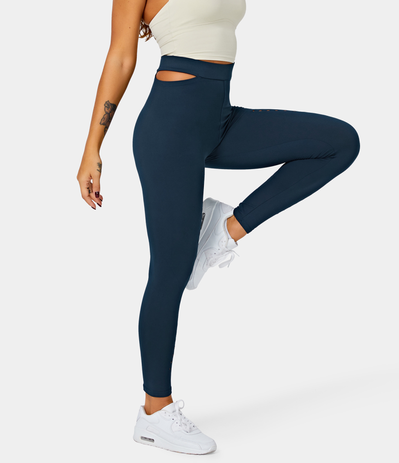 :: Halara High Waisted Cut Out Plain Full Length Women's Leggings Deep Blue | 376092-QMJ