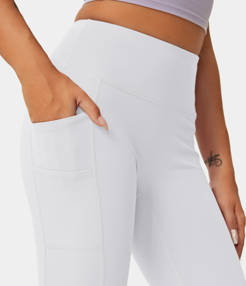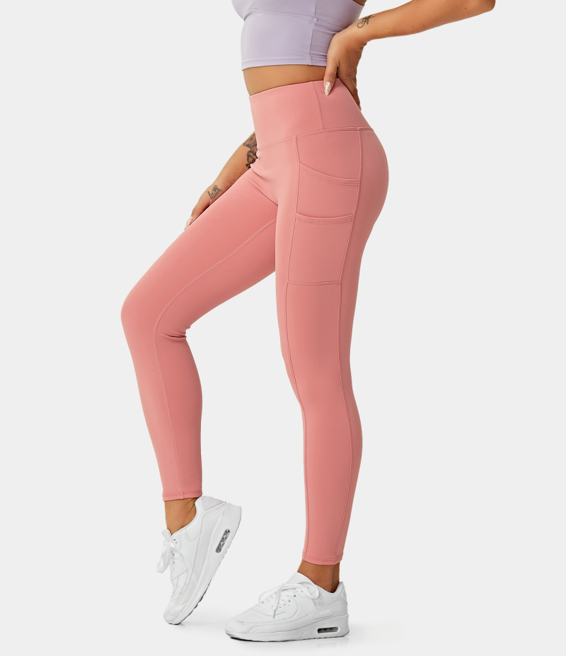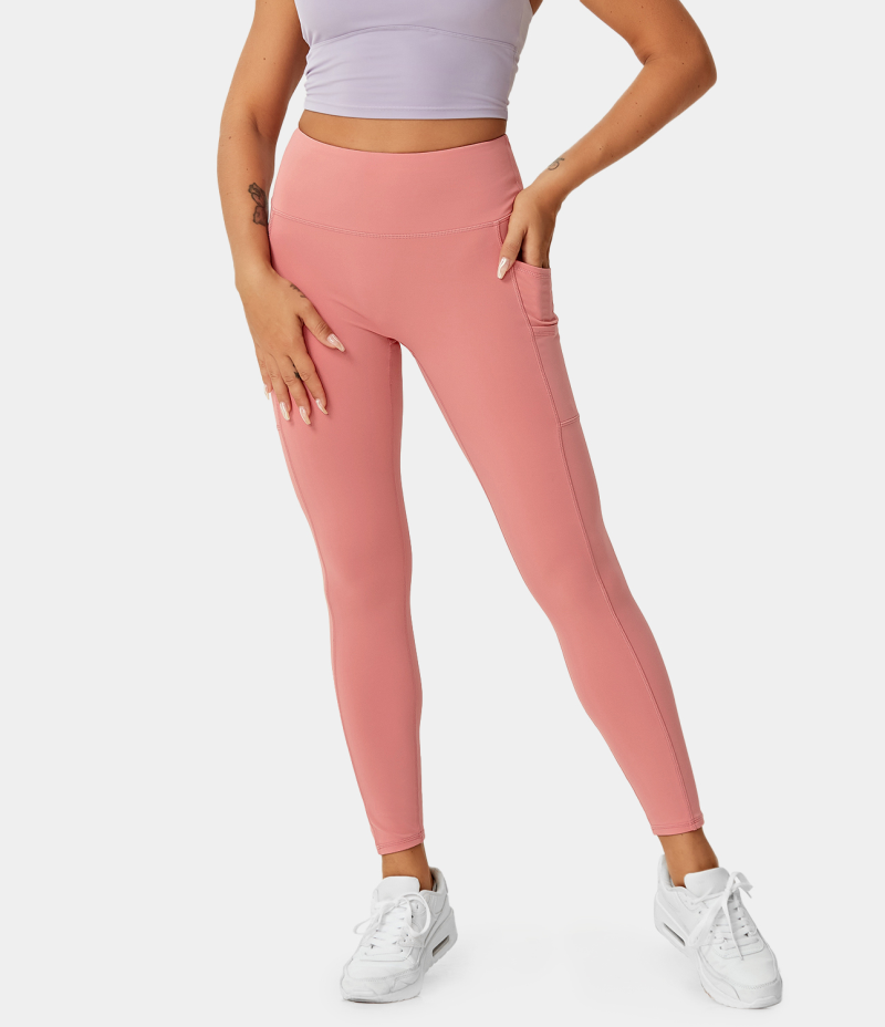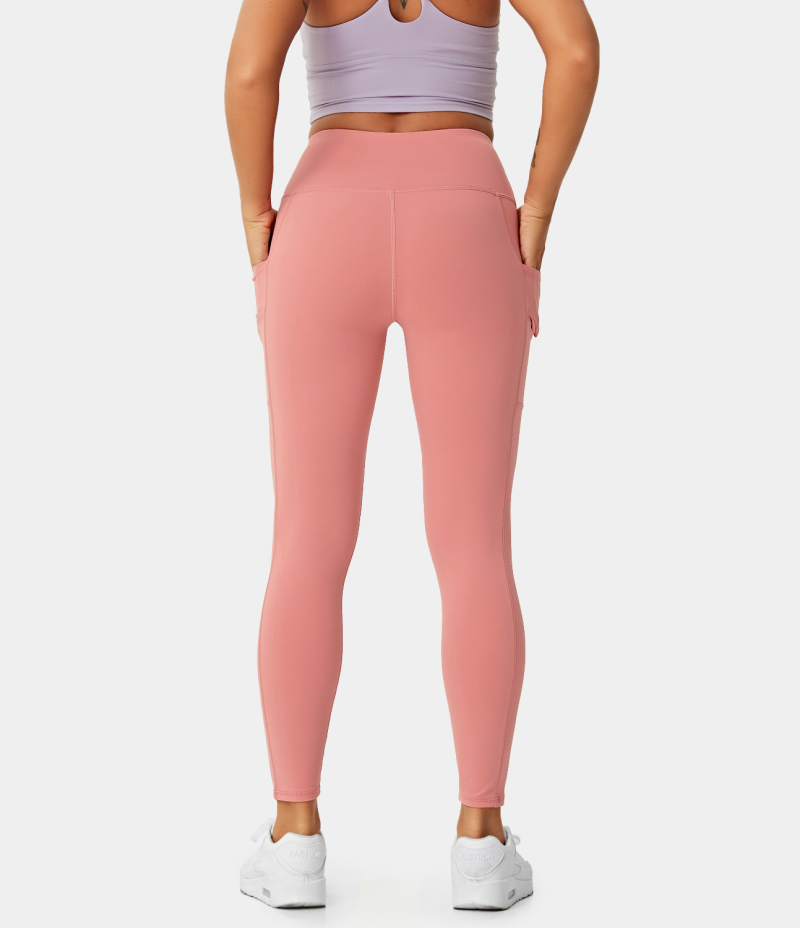 :: Halara High Waisted Double Pockets Plain 7/8 Women's Leggings Candy Pink | 752086-XJQ
