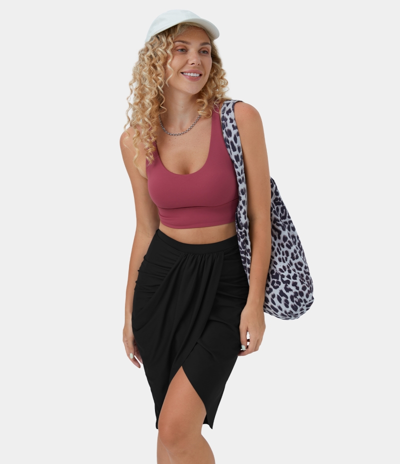 :: Halara High Waisted Draped Asymmetric 2-in-1 Pocket Casual Women's Skirts Black | 926048-QBU