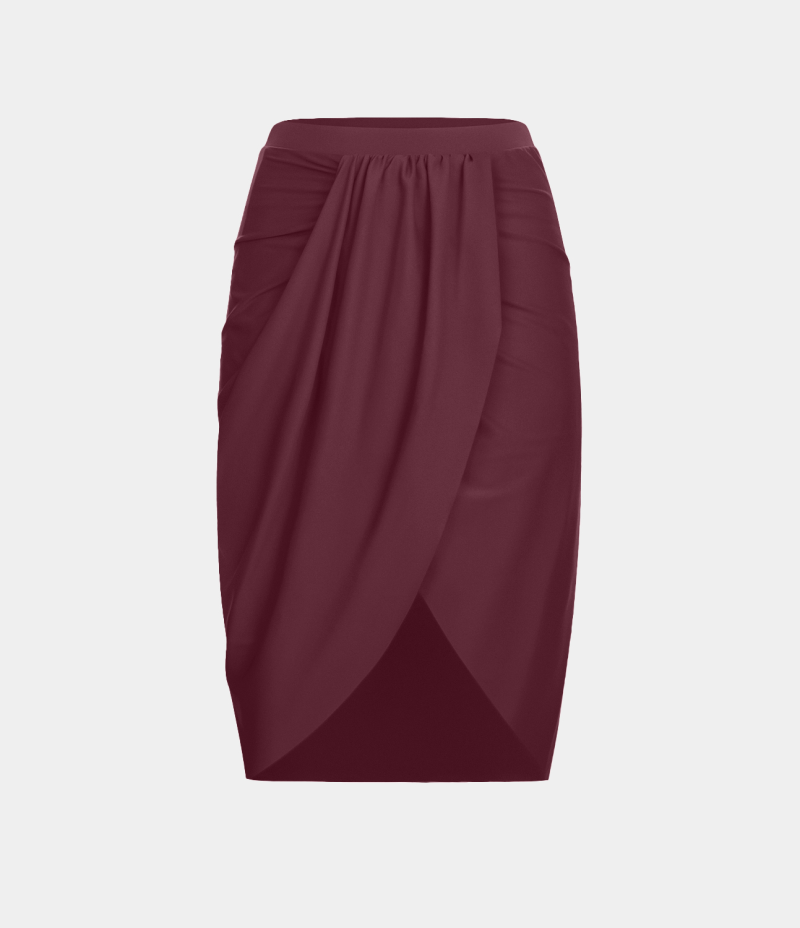 :: Halara High Waisted Draped Asymmetric 2-in-1 Pocket Casual Women's Skirts New Maroon | 103748-ZNI