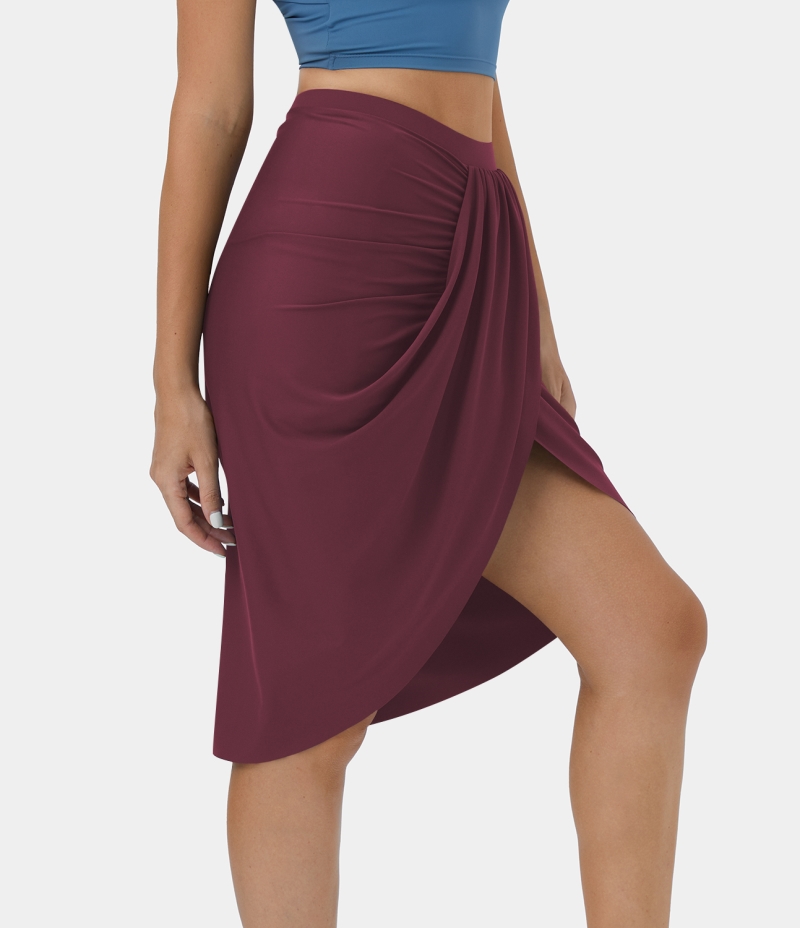 :: Halara High Waisted Draped Asymmetric 2-in-1 Pocket Casual Women's Skirts New Maroon | 201859-QVC