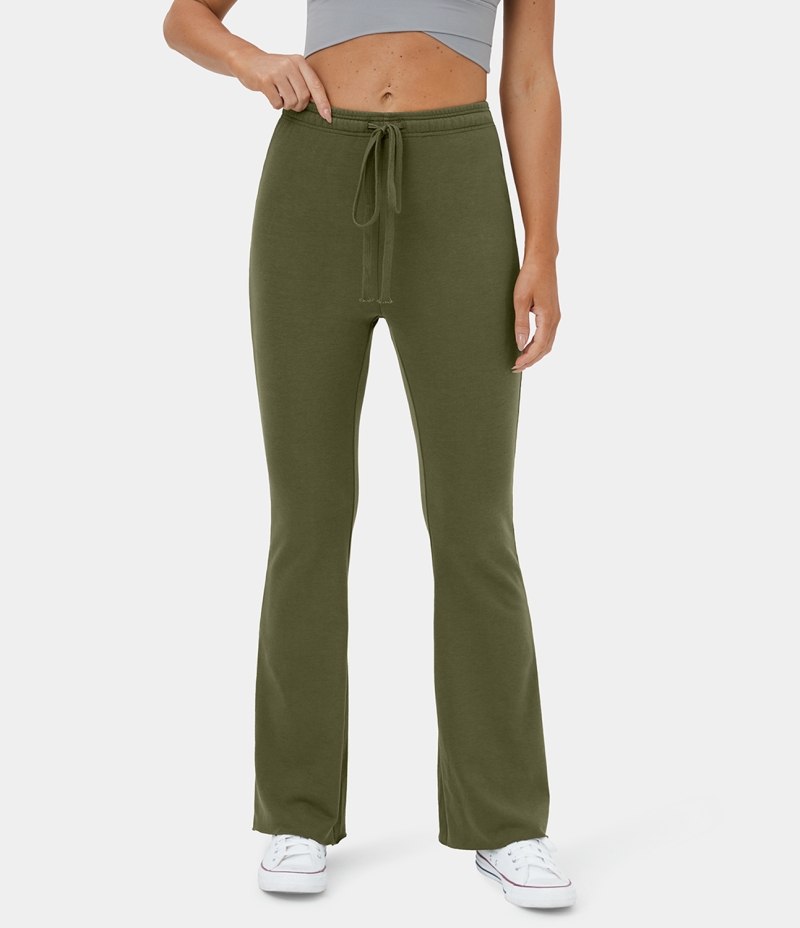 Halara High Waisted Drawstring Back Side Pocket Casual Flare Women's Pants Army Green | 365827-WPU