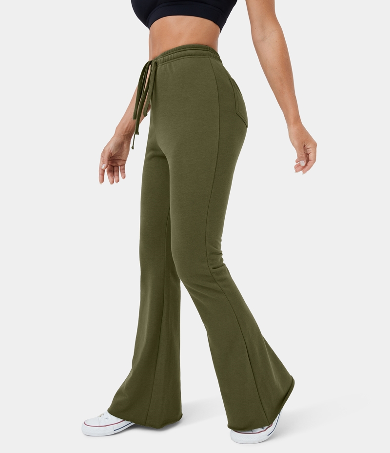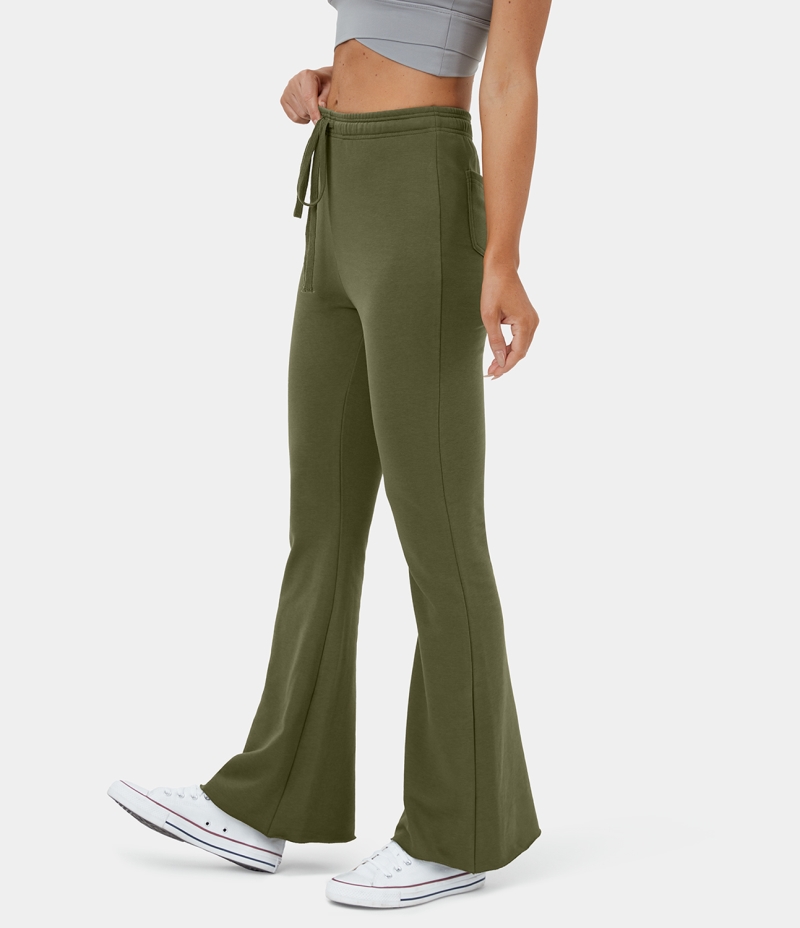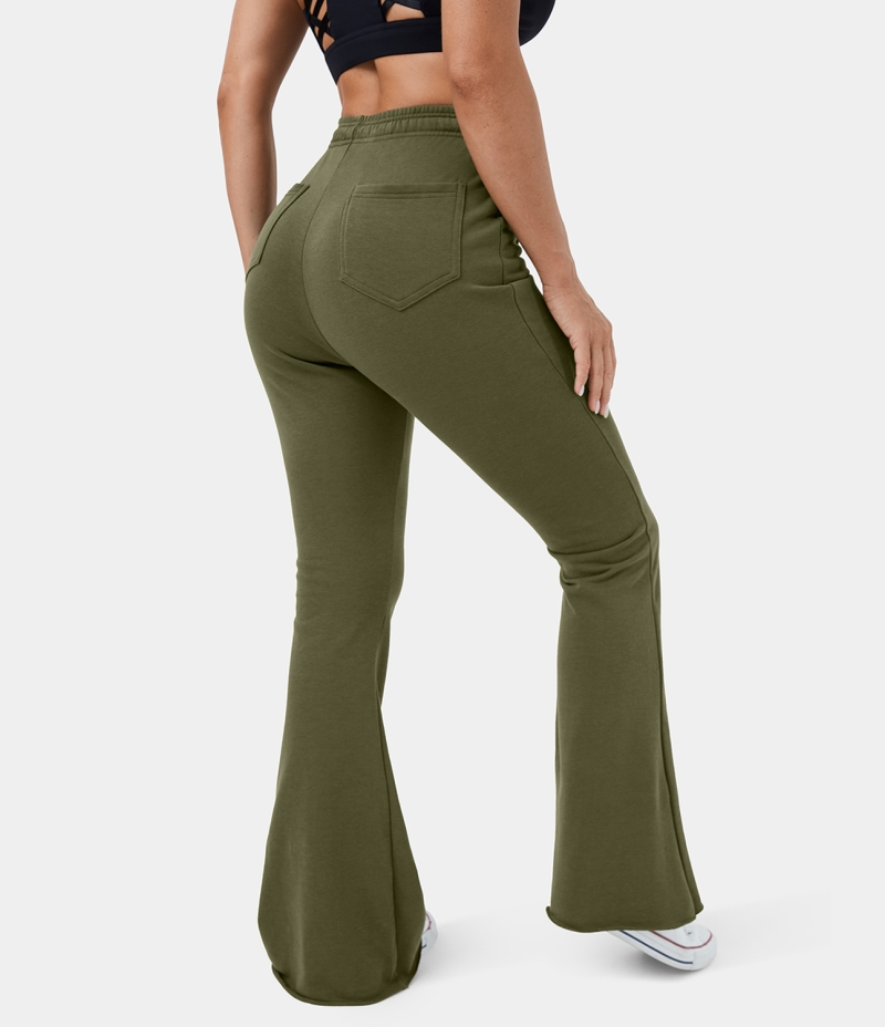 :: Halara High Waisted Drawstring Back Side Pocket Casual Flare Women's Pants Army Green | 365827-WPU